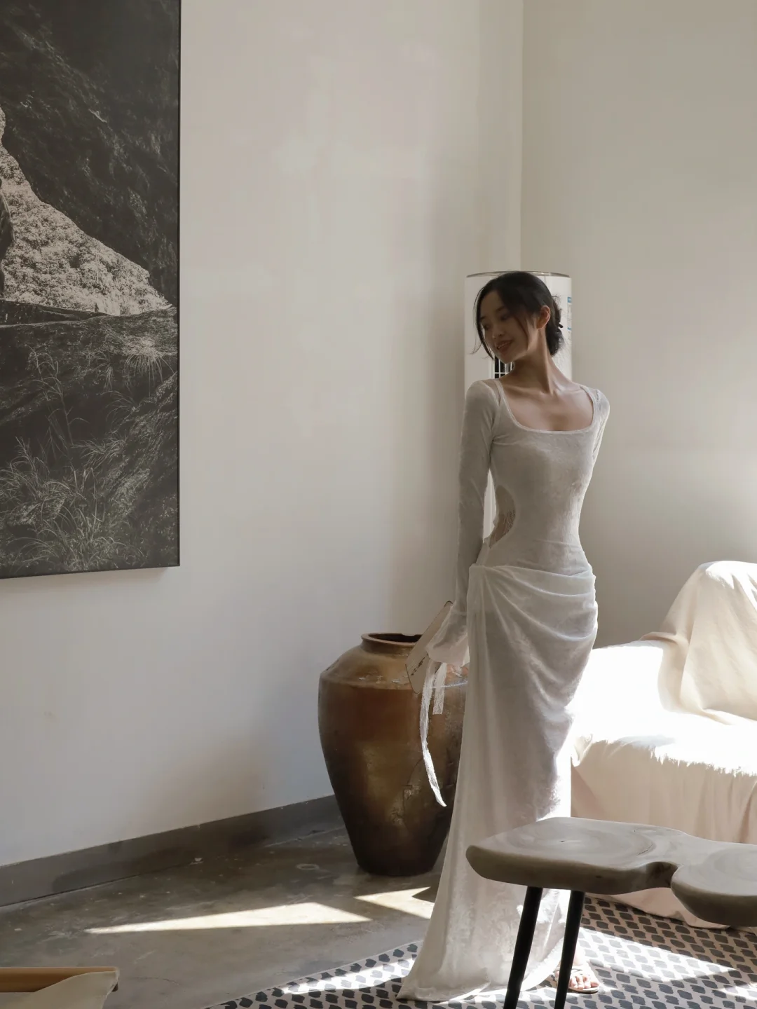 脚型真好看,但床上的袜子更显眼。