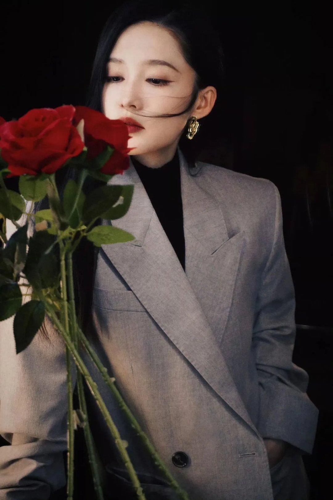 刘亦菲这一身衣服太丑了,用花挡住了才觉得好一点,全靠脸撑着
