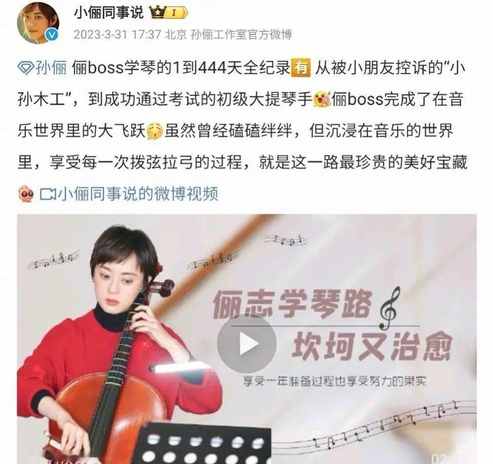 据悉孙俪是从21年12月13日开始学琴,到去年3月2日过了初级大提琴手,再到现在考过大提琴一级,不得不夸“娘娘”多才多艺不仅有天赋,更有坚持!