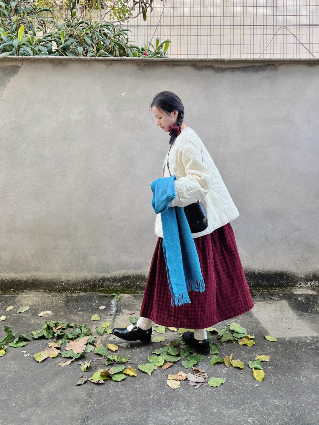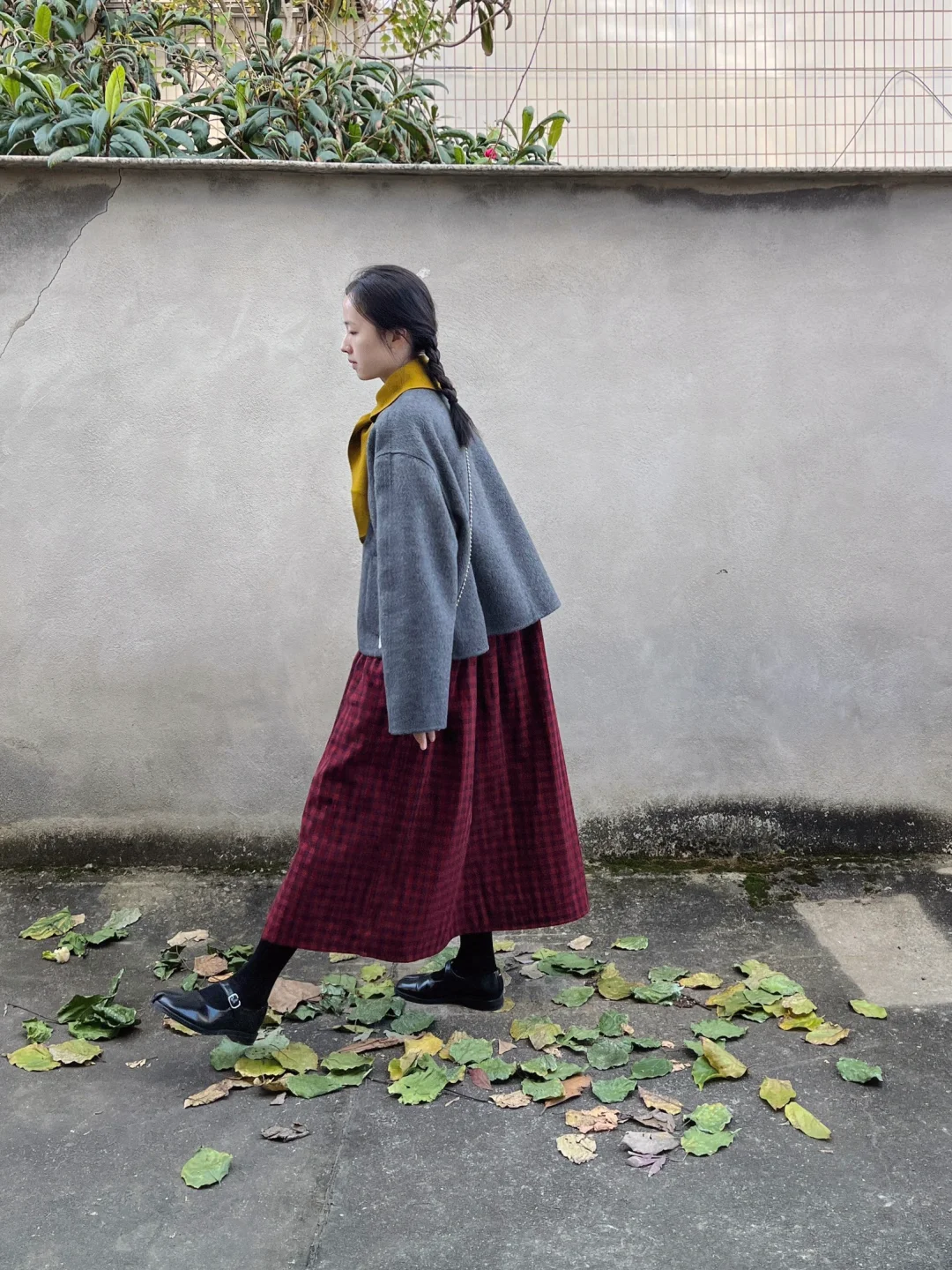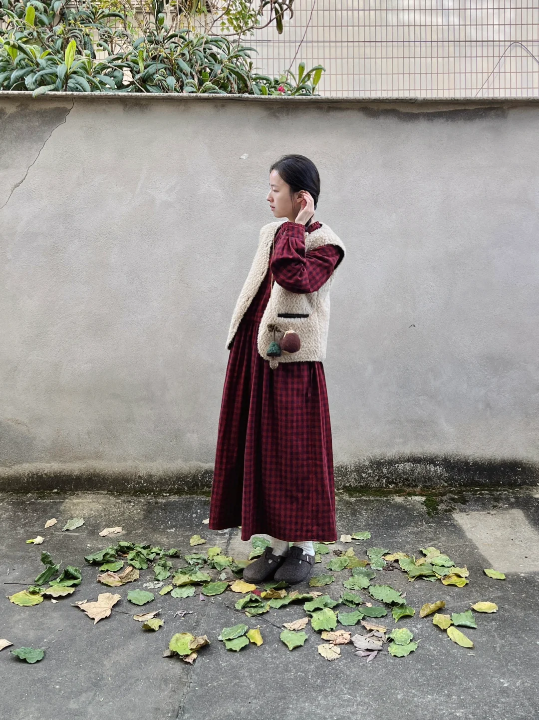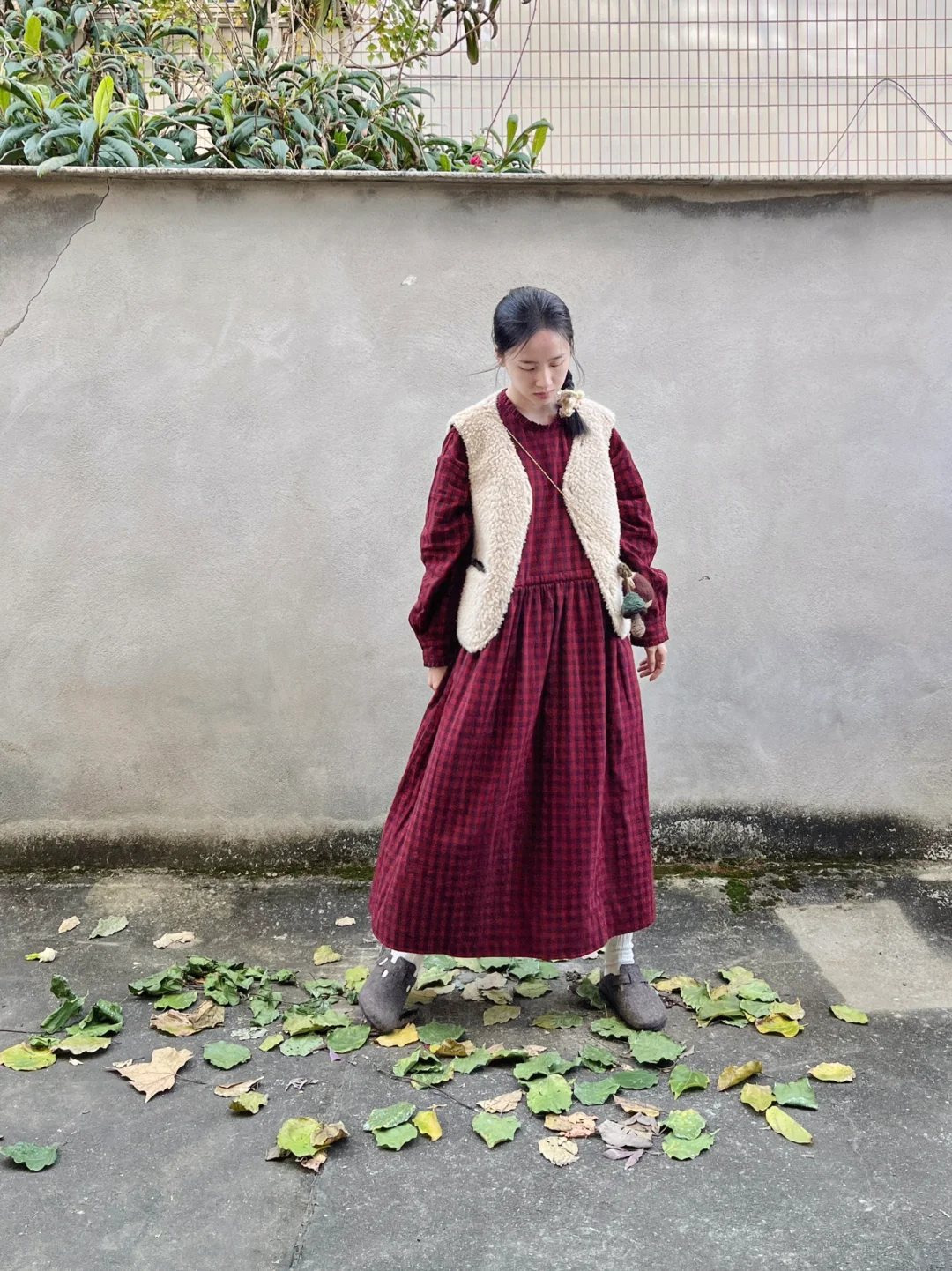 小个子穿长裙|圣诞复古红格裙的四种穿法