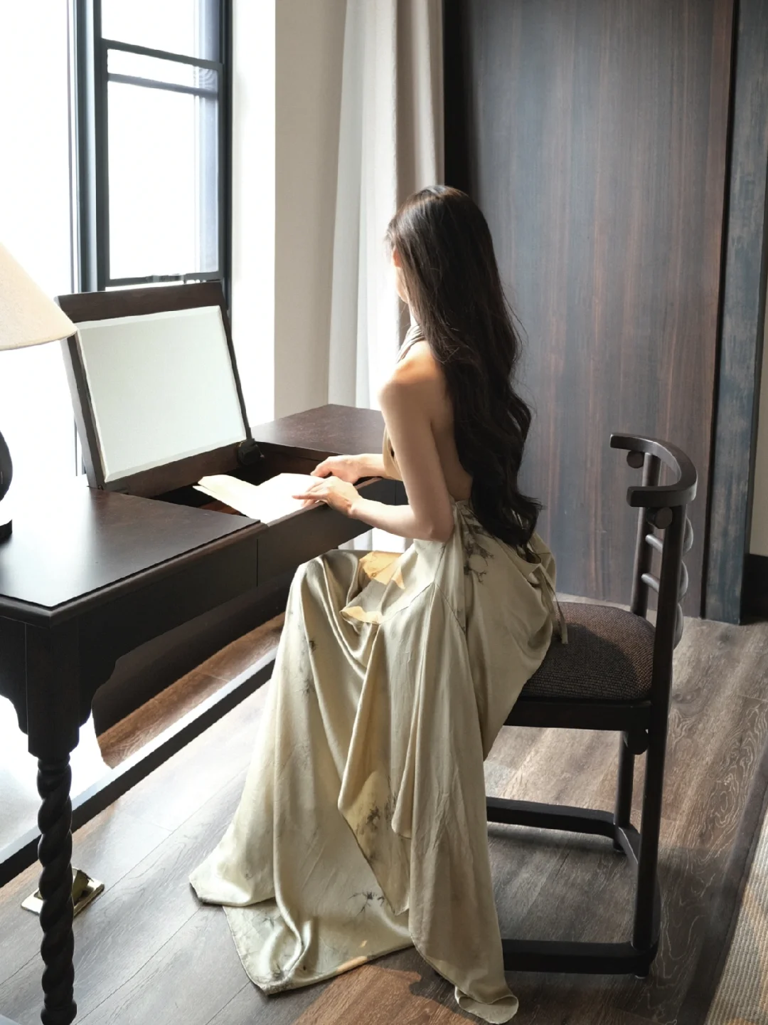 她披着长发从光里走来