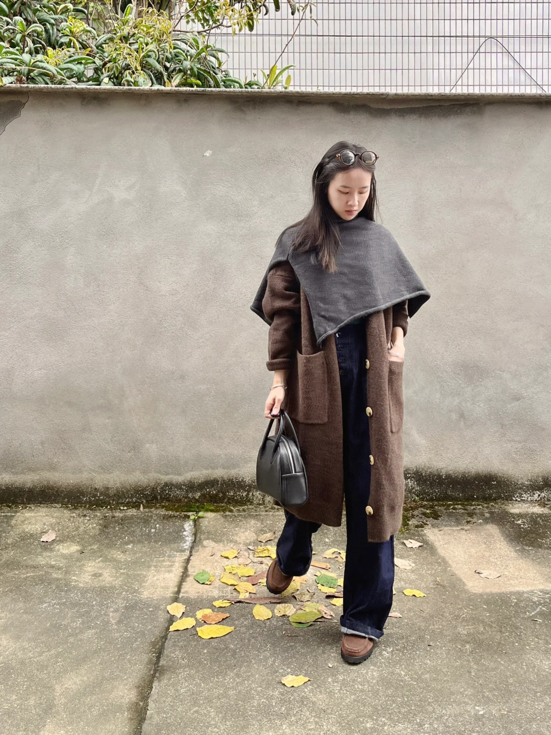 山林间的溪流绕着青石路,新中式上衣配牛仔喇叭裤,把国风温婉和休闲随性揉进山野的风