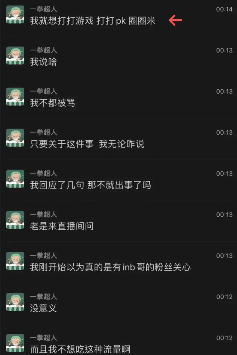 xinyi:我今天休息了,我怕说错话啥的,网上那些断章取义的你们也知道,不会截好的,一旦有一点能扭曲的,就给你截下来,而且我不想吃这种流量没意义,我刚开始以为真的有inb哥粉丝关心,老是来直播间问,我回应了几句那不就出事了吗,只要关于这件事无论咋说,我不都被骂,我说啥?我就想打打游戏,打打PK,圈圈米。