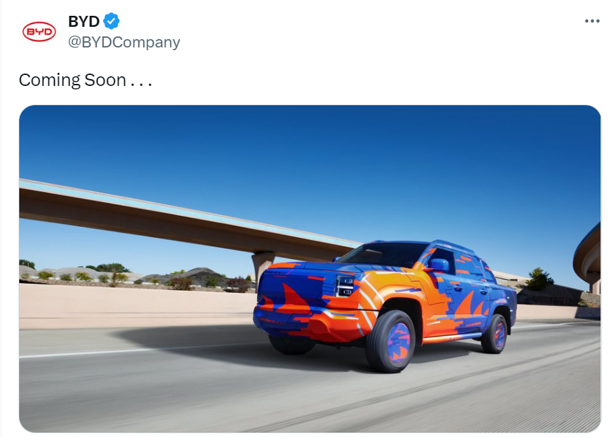 而比亚迪皮卡的谍照则是由来已久,此次官方说明“coming soon!”,说明即离发布不远。根据其兄弟车型豹5车型的配备,这款混动皮卡的动力为纵置1.5T和2.0T混动发动机,整车动力系统500kW+的峰值功率,同时主打超强越野动力和低能耗。