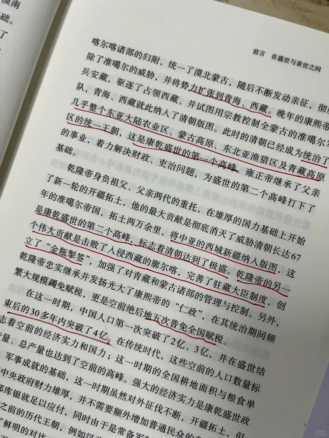 但书中也有值得商榷的地方。比如作者指出,康乾盛世衰落的根本原因并不是吏治败坏,而是人口持续不断的增长速度超过了经济增长速度。乾隆后期,中国人口突破3亿,耕地已经开发殆尽,人口压力可想而知。当权者又基于本民族(满族)利益与世界脱轨,失去了实现经济转型的机会。