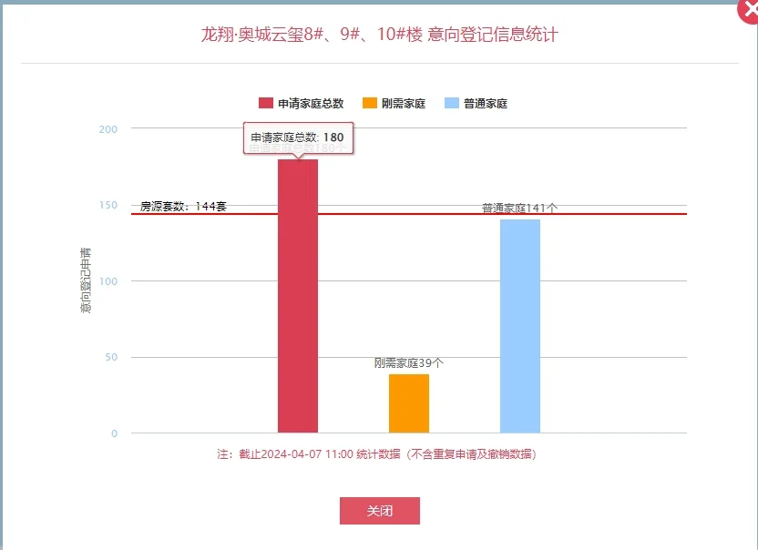 【老羊说楼市】最后核心收官!港务区龙翔奥城云玺第6次加推,继续“飘红”。 龙翔奥城云玺项目此次推出的是8、9、10三栋小高层,户型165㎡-194㎡的三室、四室产品,总共144套房源,毛坯均价22636.41元/㎡。 目前项目已经吸引180个意向家庭登记,其中刚需39个,普通141个。