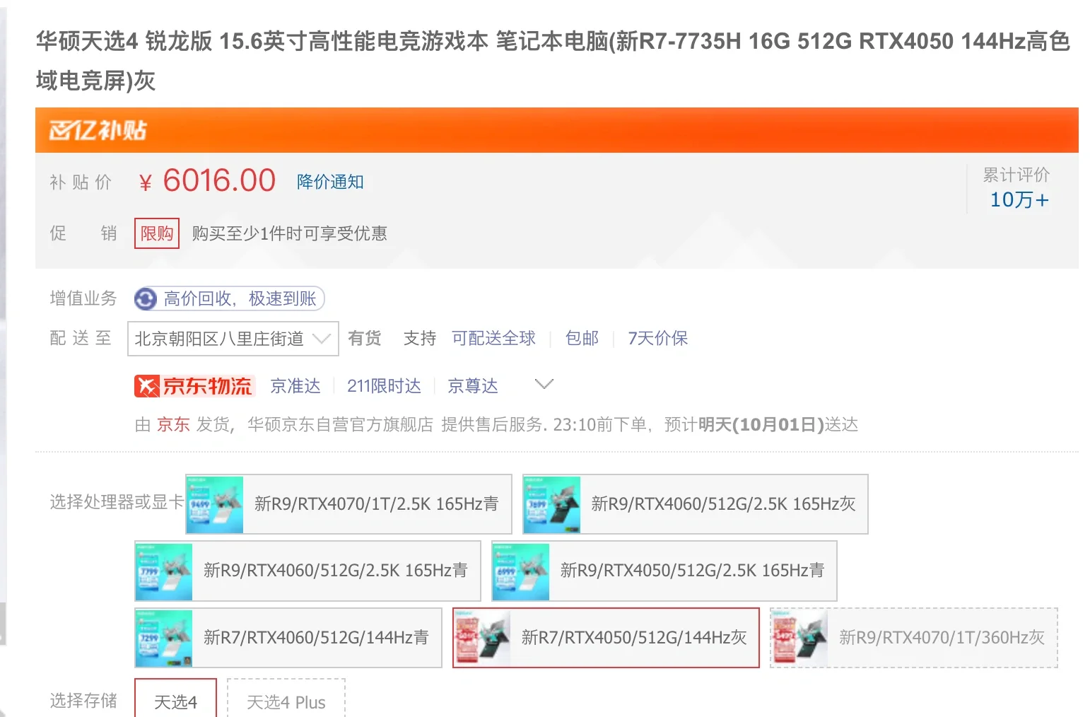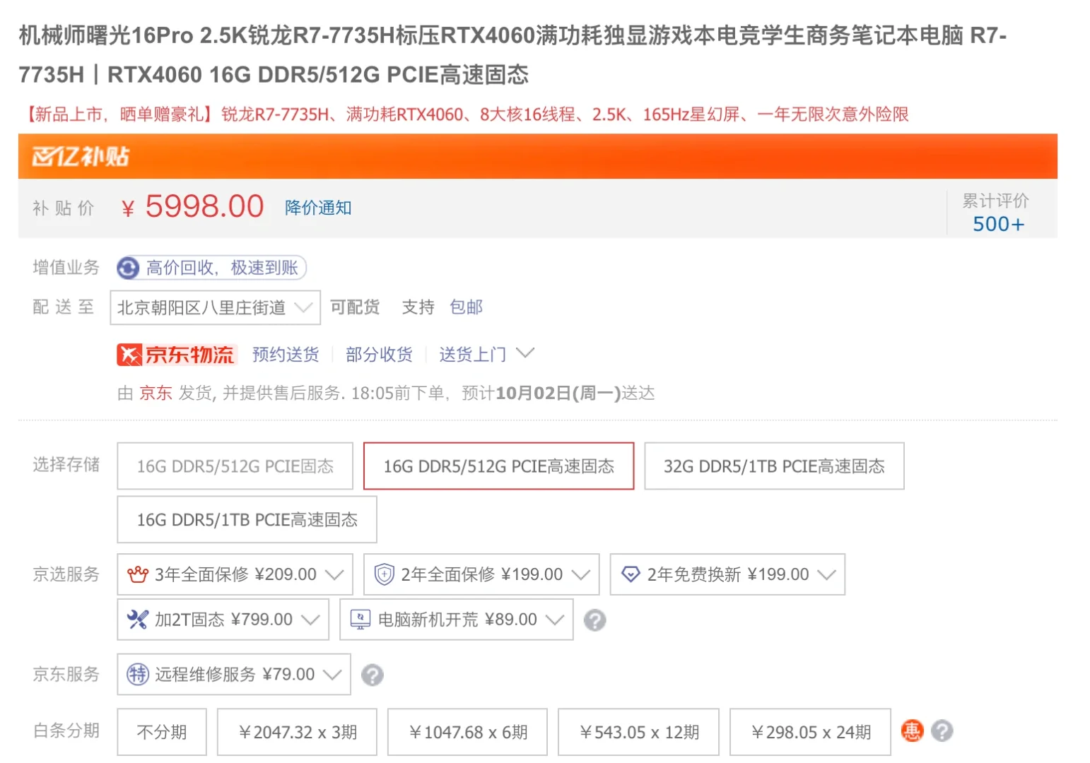 R7-7735H-16G-512G-RTX4060 售价 5998