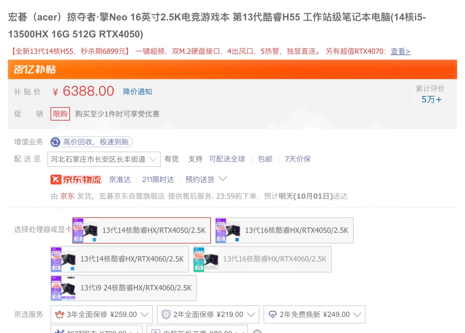 i5-13500HX-16G-512G-RTX4050 售价 6388💰