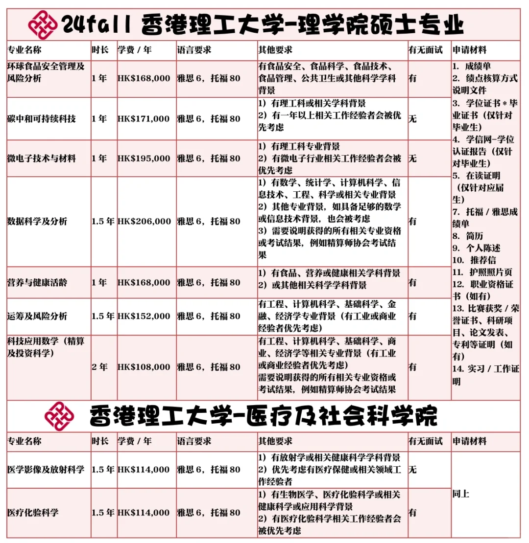 🇭🇰24fall港理工全网最全硕士专业申请条件
