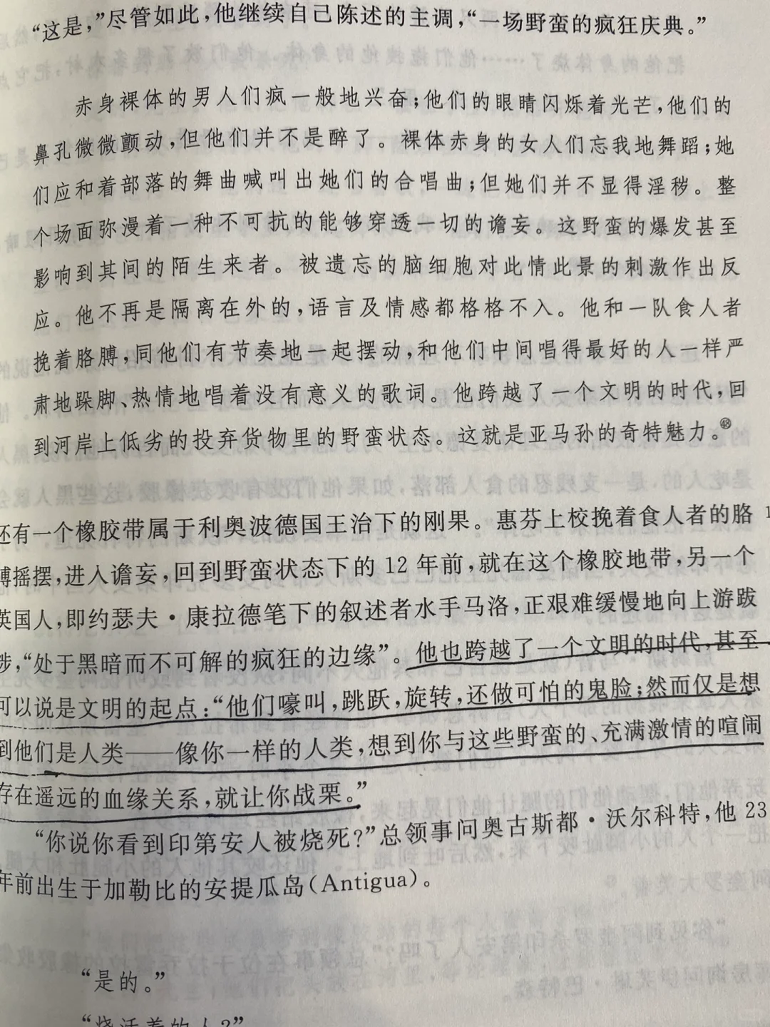本书充斥了殖民 主义与资本主义的矛盾性。殖民者物化土著,认为丛林和土著人蛮荒、恐惧与混乱。而土著者的恐怖神话和萨满是他们的一种自我呈现,更是对其知识系统与文化模式的对 抗