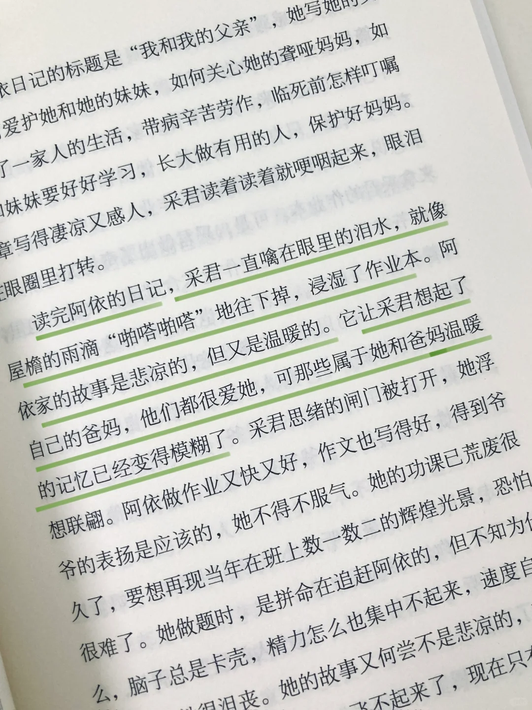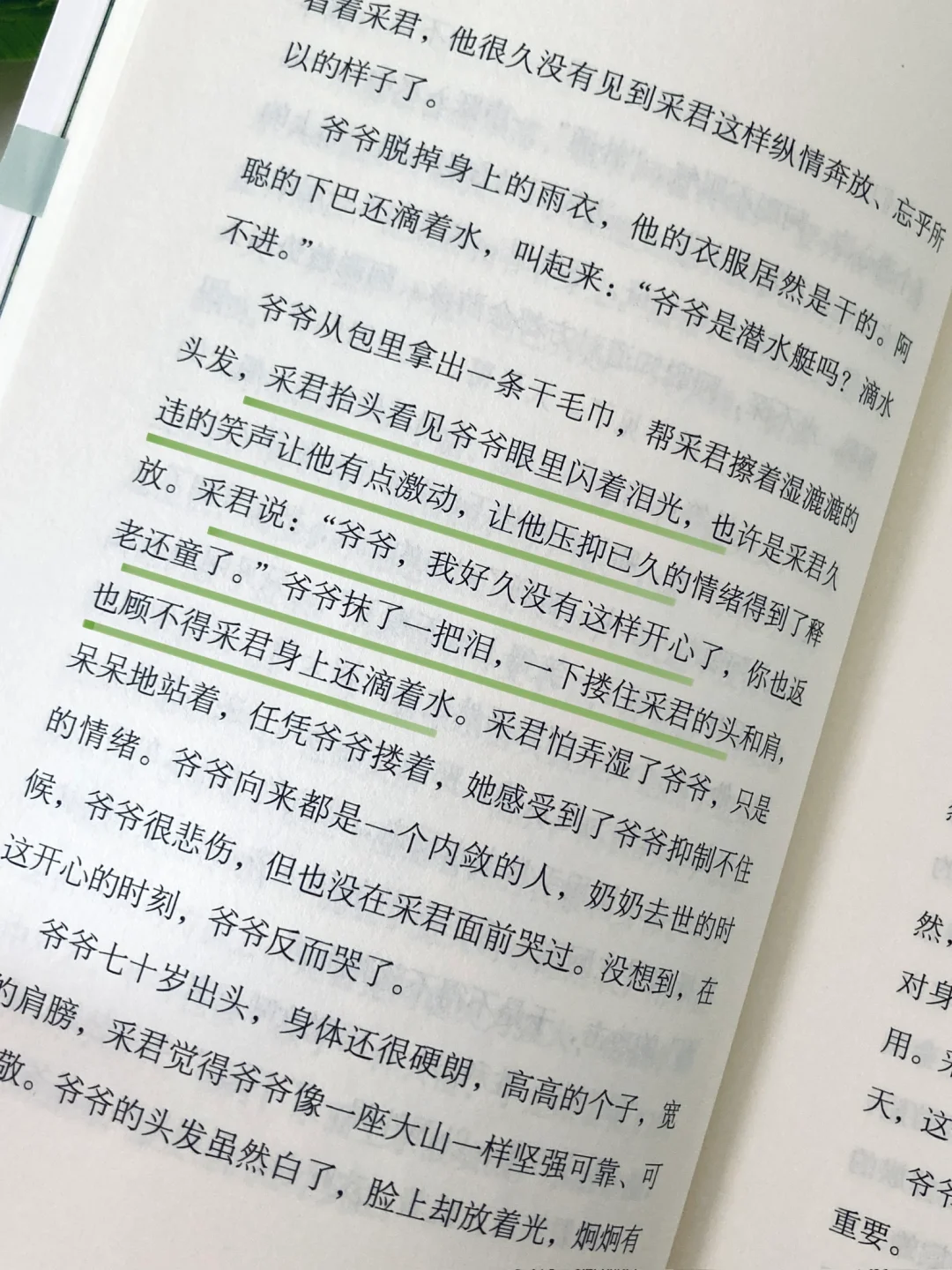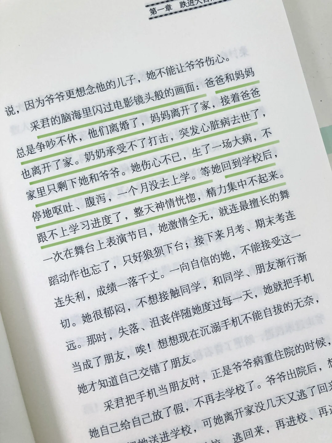 😔书中采君的父母分开了,奶奶突发心脏病去世了,家里只剩下她和爷爷两个人。从此采君在生活上和学习上都一蹶不振,反复几次都不想上学,爷爷便想带她出去走走,换换环境。