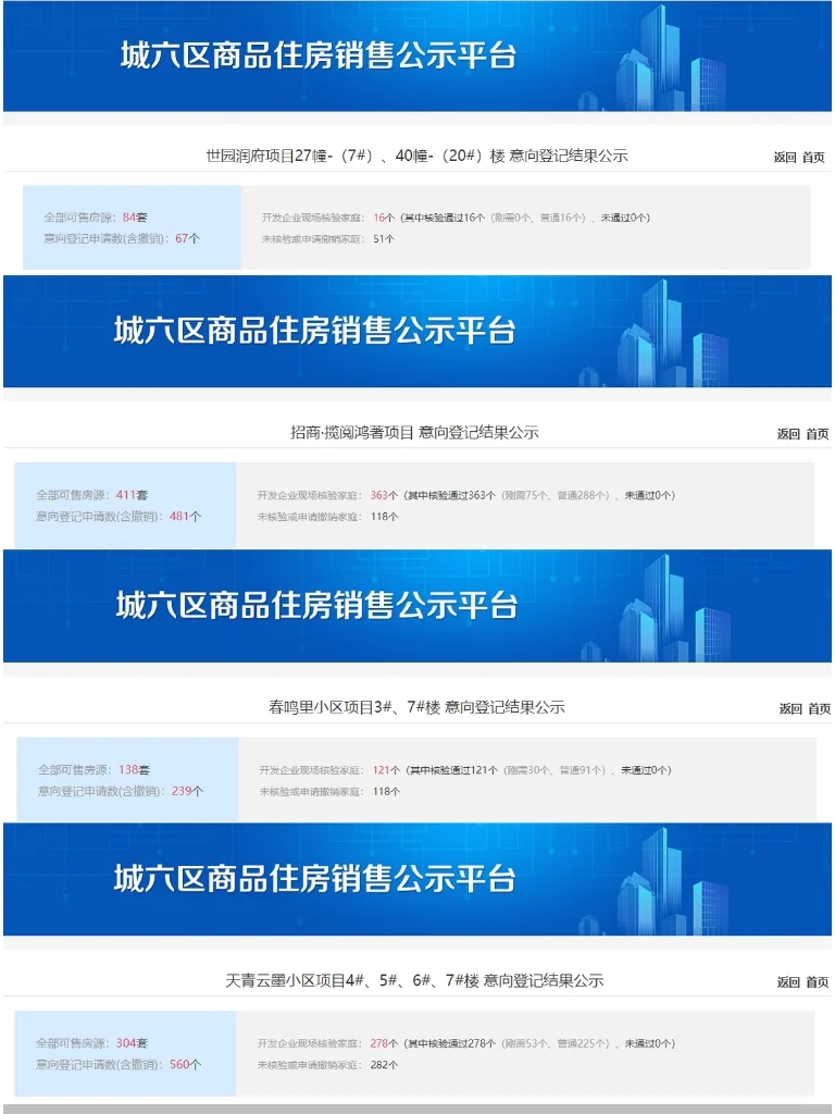 从登记数据上看,整月表现偏弱;只有保利云谷天汇(选房率68%)、利君华发城央都荟(选房率99%)、金泰唐樾(未选房待定)、融创南长安街壹号((选房率75%)4个“百人规模摇号”楼盘。