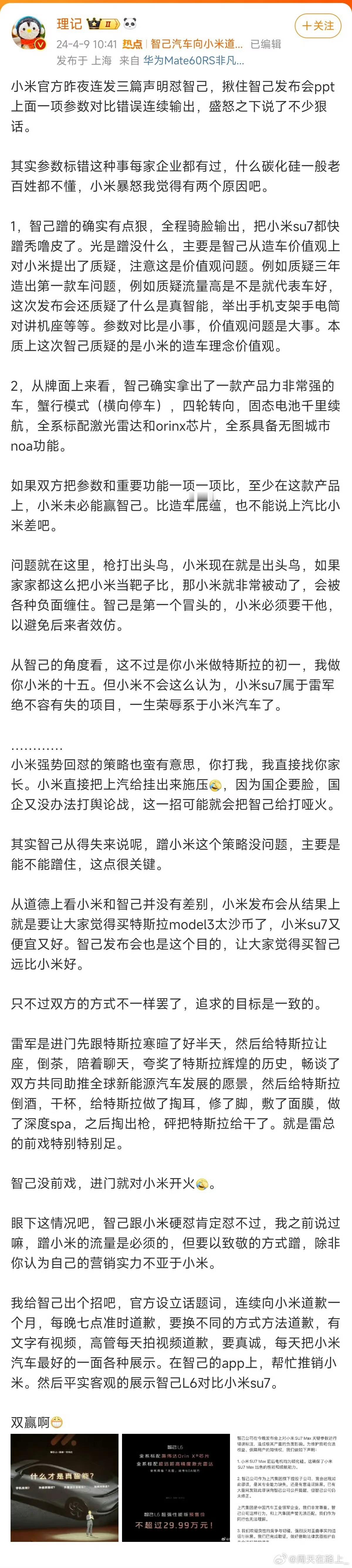 小米研究汽车,友商研究小米。
