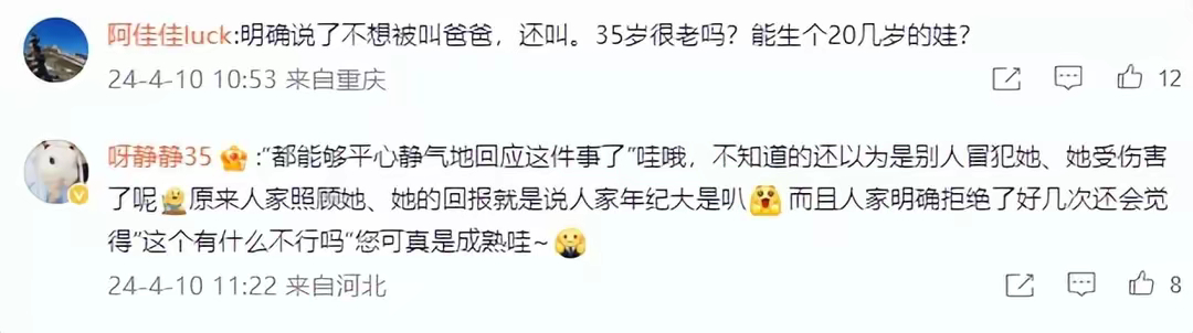 她觉得就是开玩笑,不懂有什么不行的,陈伟霆年纪大,然后又会照顾人,就脱口而出了而已。这件事过了这么久还在被人说,所以她就回应一下,陈伟霆85年,欧阳娜娜00年,确实是差了十五岁,但陈伟霆的形象还不至于老到被叫爸爸吧,哈哈。