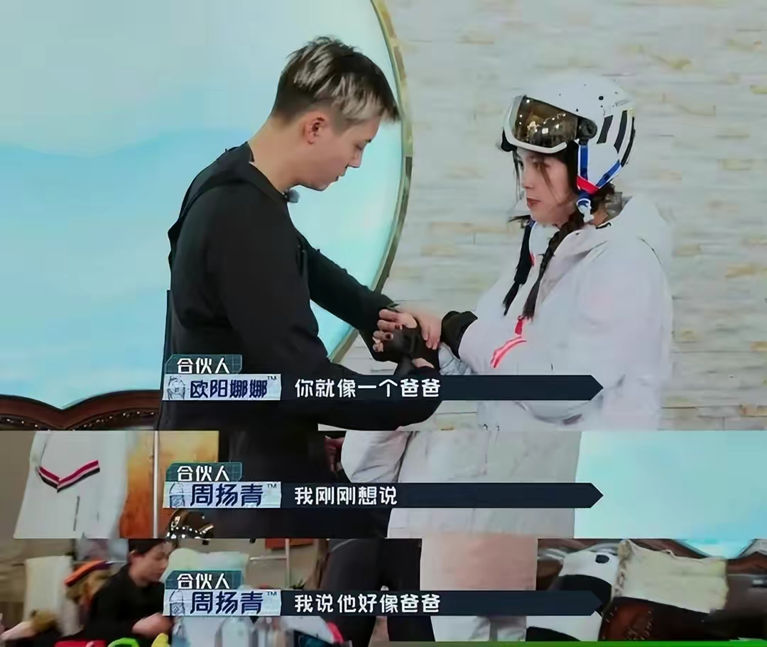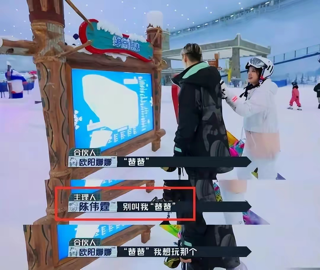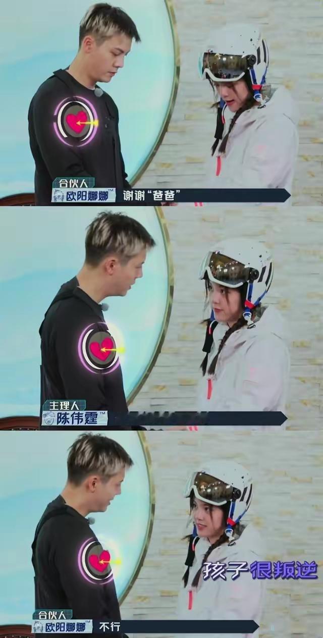 陈伟霆甚至认真问她说,你可以叫我哥哥吗,欧阳娜娜笑着说不行,可能自己觉得这个梗挺有趣的,到了滑雪场之后,欧阳娜娜还不停止,坚持要叫陈伟霆爸爸。陈伟霆再次拒绝,可能一方面觉得这个昵称不合适,一方面觉得自己年轻着呢。