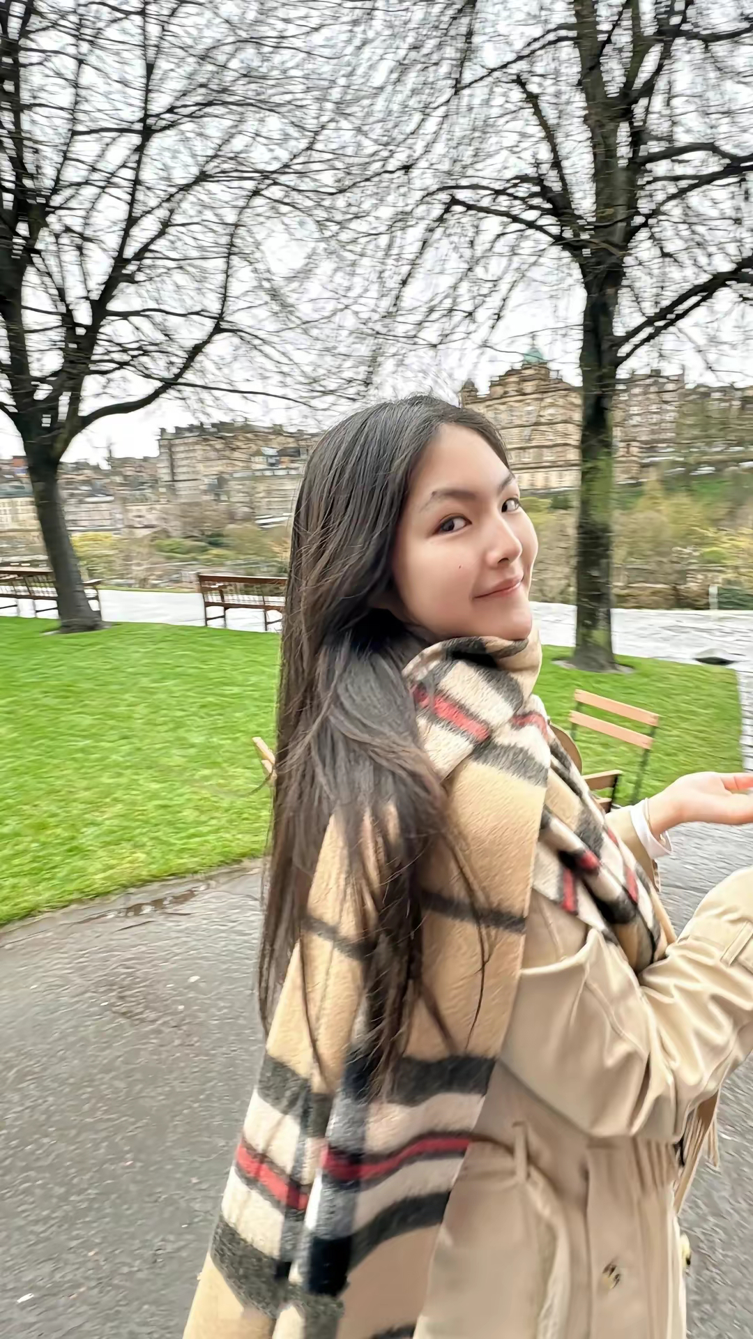 王岳伦染了金色的头发,显得年轻了不少,女儿王诗龄穿着棕色风衣和英伦风的围巾,据说这身不起眼的行头也要4万多元,不愧是李湘的女儿。