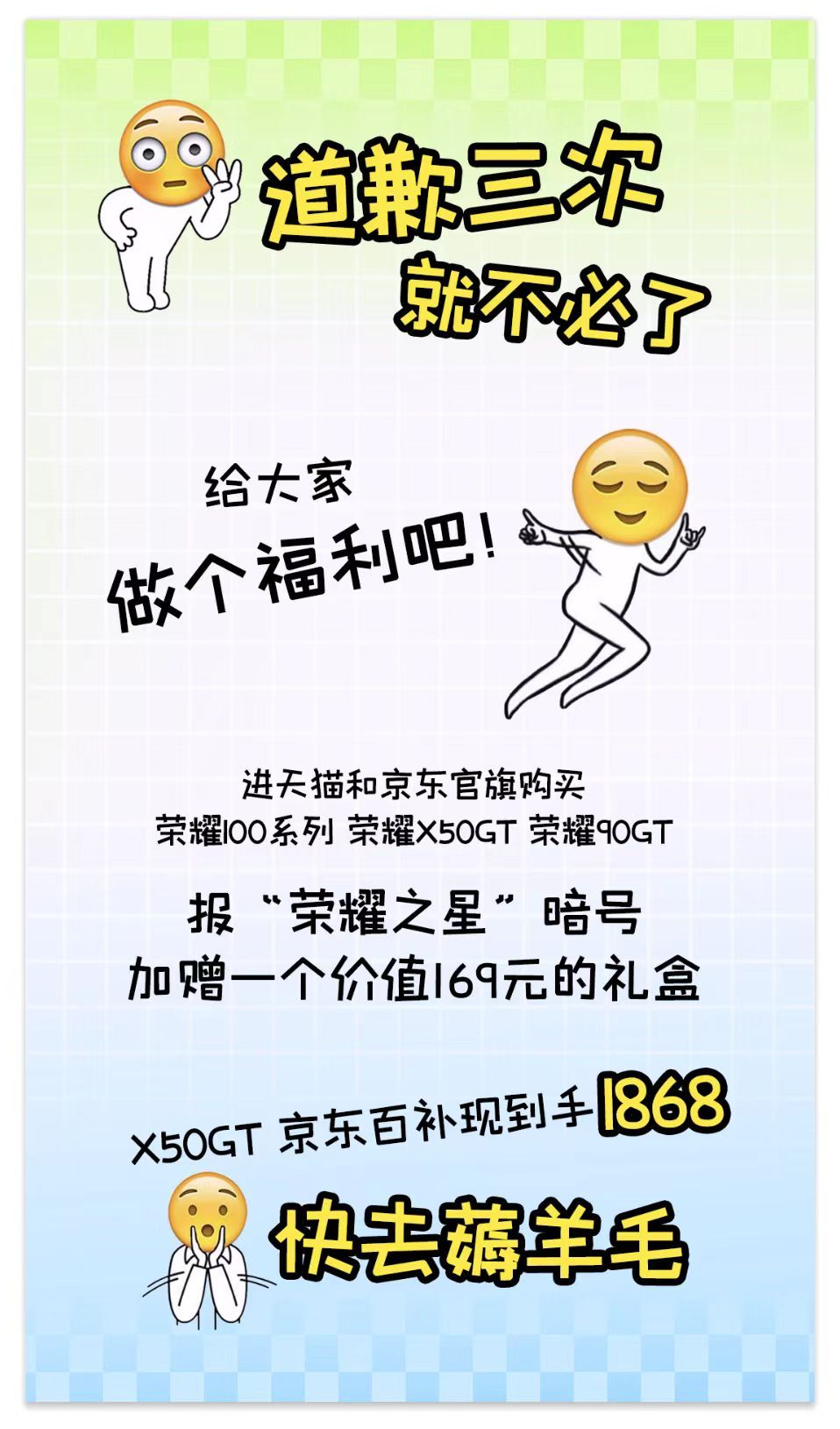 #荣耀回应小米道歉#别关注道歉的事了,赶紧薅羊毛才是正事,荣耀X50 GT配置更高,上百亿补贴加礼盒🎁了