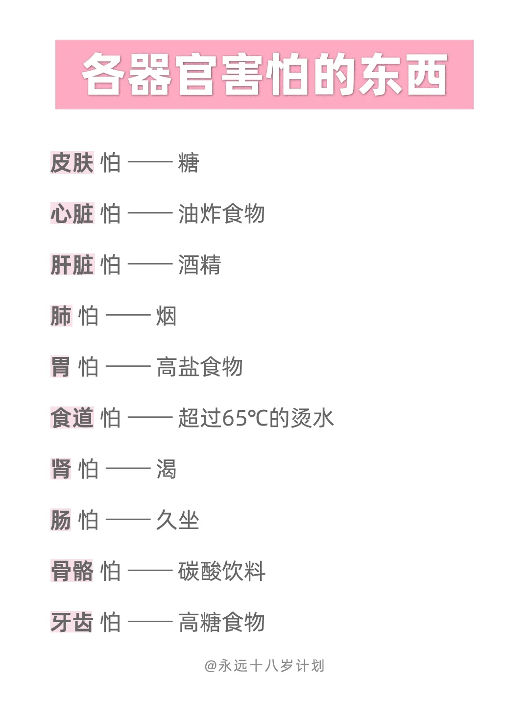 每个人都有害怕的事物,那当然身体的各部位也会有害怕的东西。快看看,你有没有经常吃一些器官不喜欢的食物?