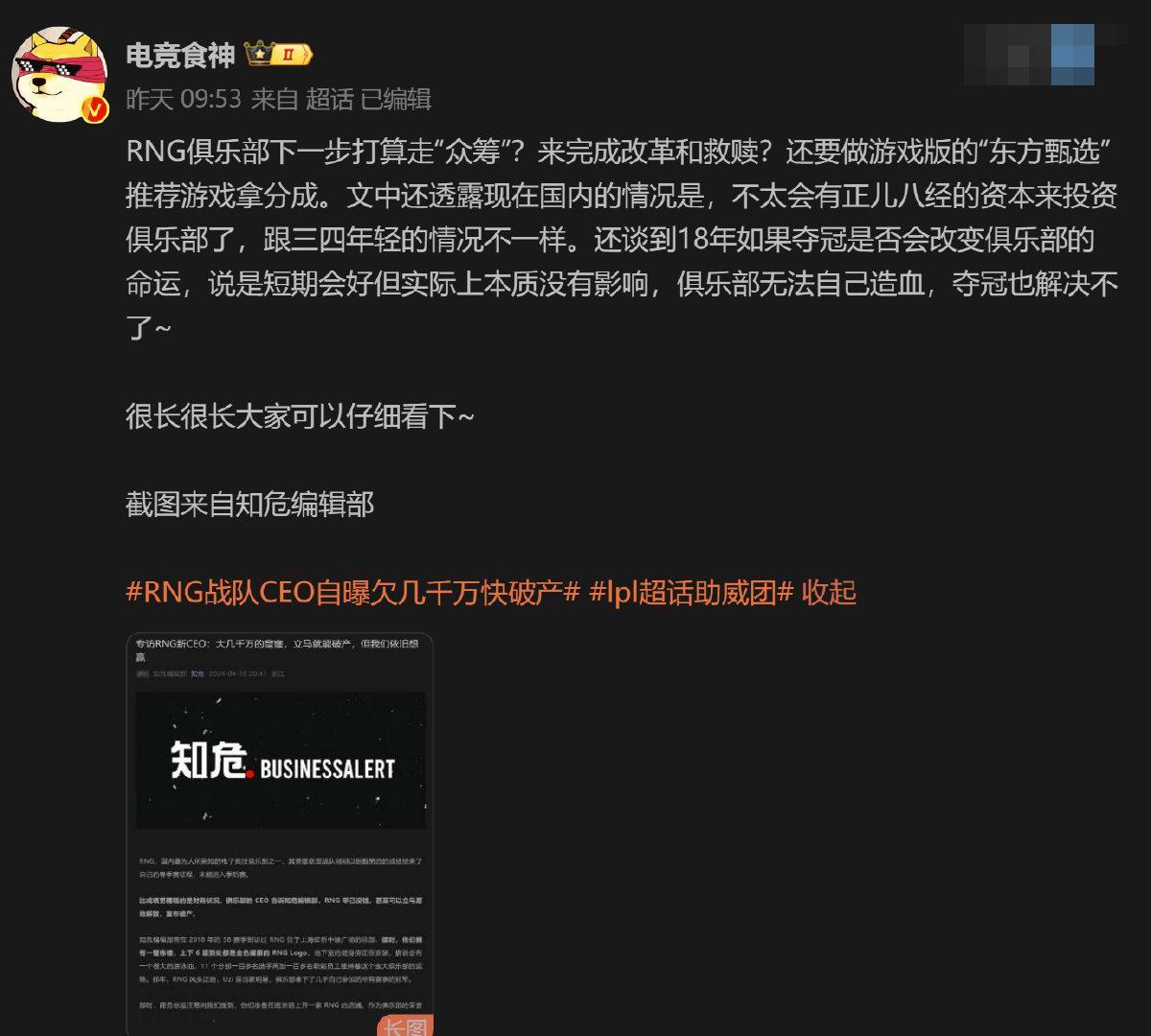 RNG将拍卖奖杯?[疑问]前几天采访所说的解散破产,有些失真,没那么惨还能抢救一下!