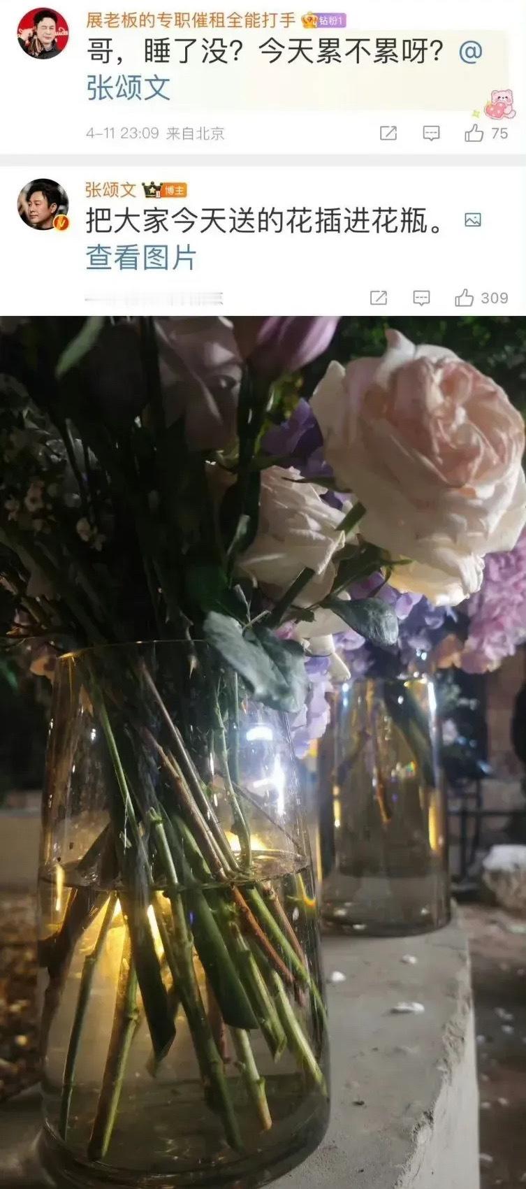 #张颂文已把应援花插到花瓶#4月12日,张颂文意外登上热搜,原因竟是他在活动后将粉丝送他的应援花全数带走,甚至还要在节目中展示给大家看!