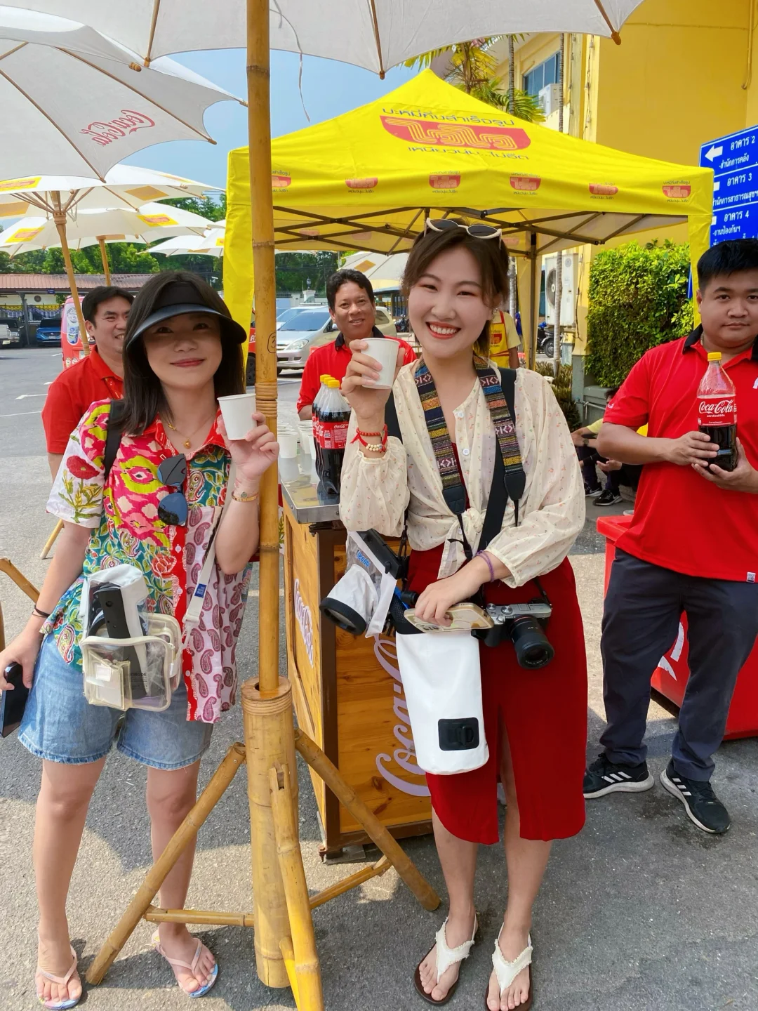 早上的僧侣布施实在太早起不来 泼水节的开启 从清迈的泼水节拜拜仪式开启 还有免费的冰镇可乐提供 40度高温天气,喝杯冷饮太爽了! 👇🏻 你们的泼水节有安排什么活动呢?