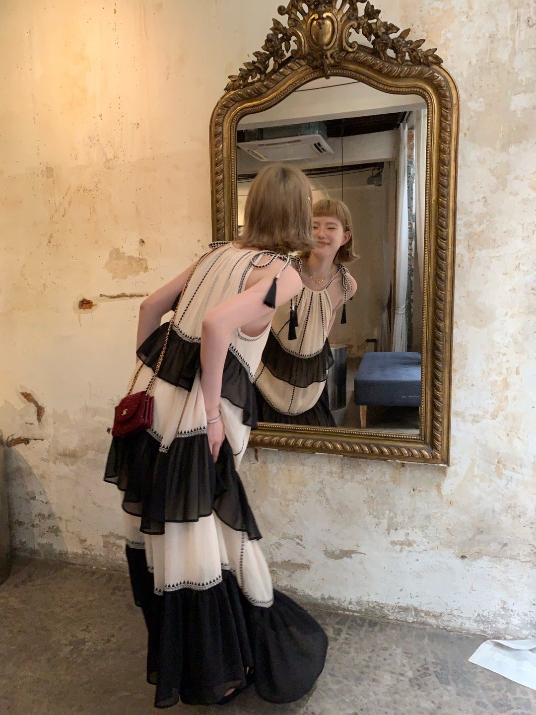 早呀 彩石流苏好有夏天的味道🪸醋酸滑滑裤好舒服好有质感 藕粉色很特别 市面上都