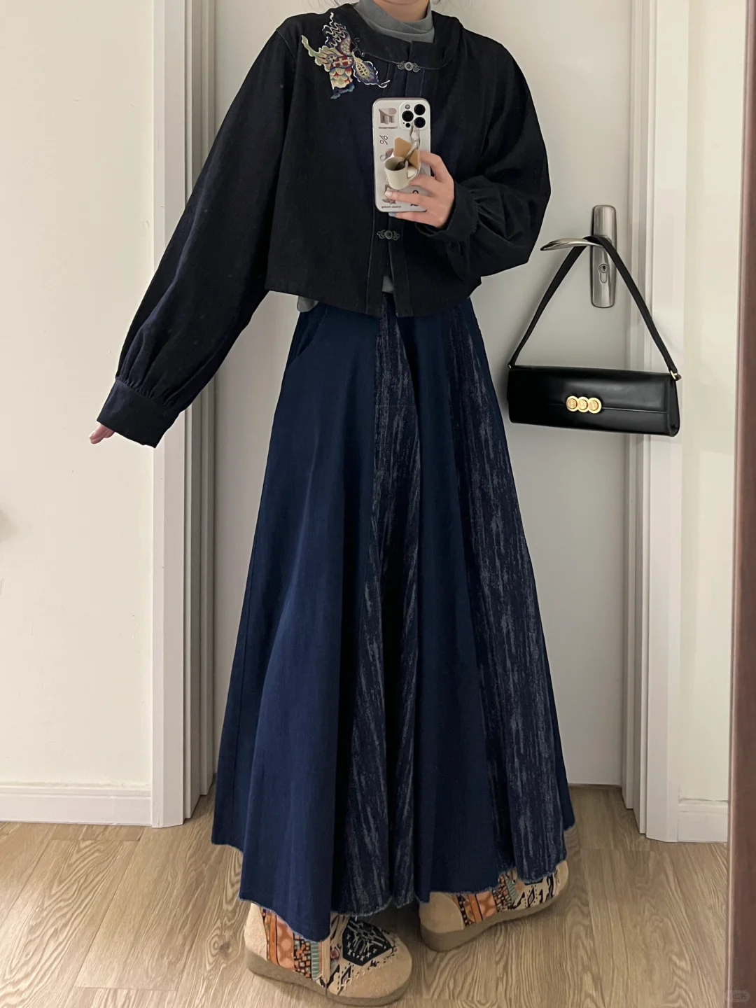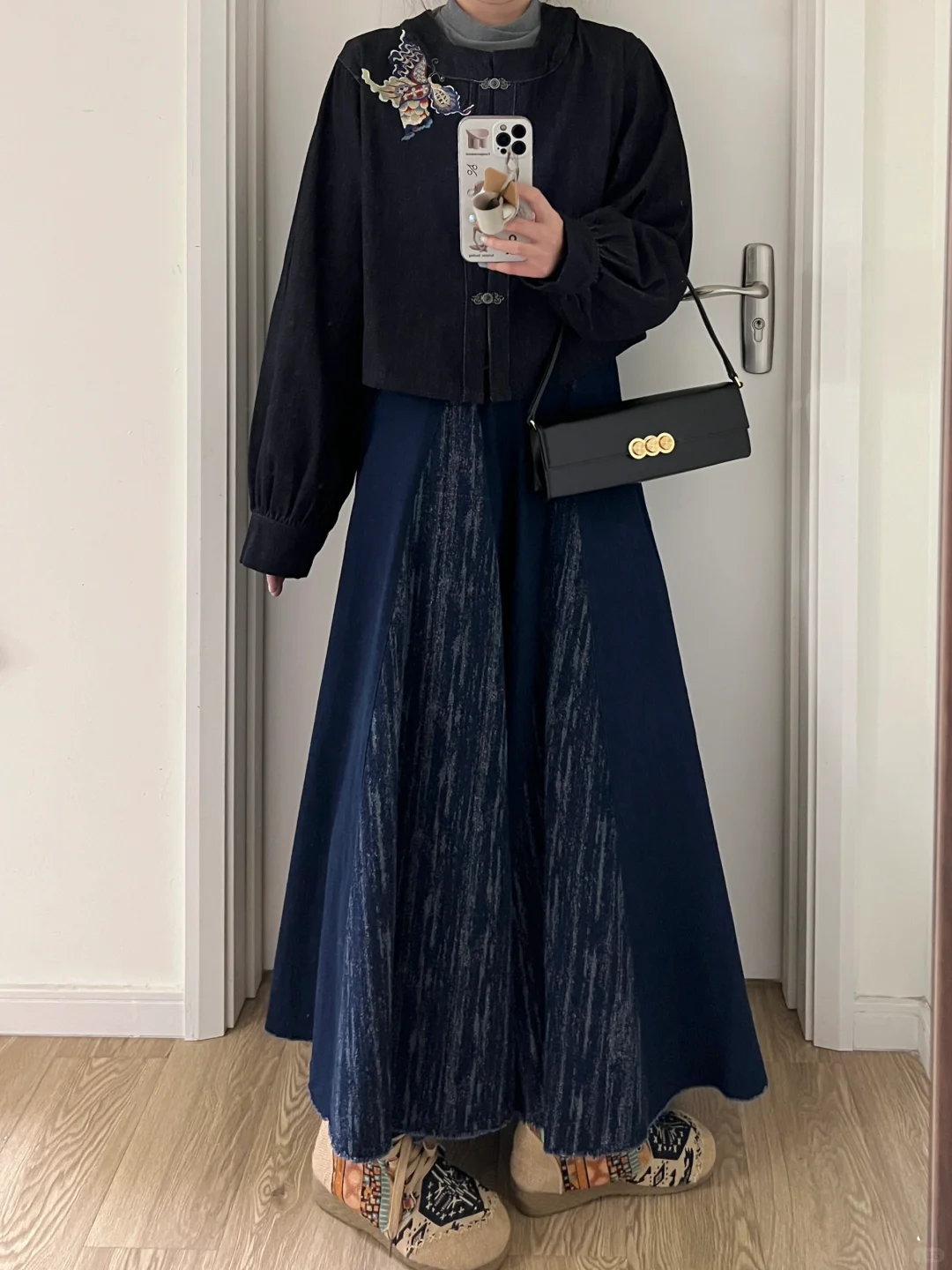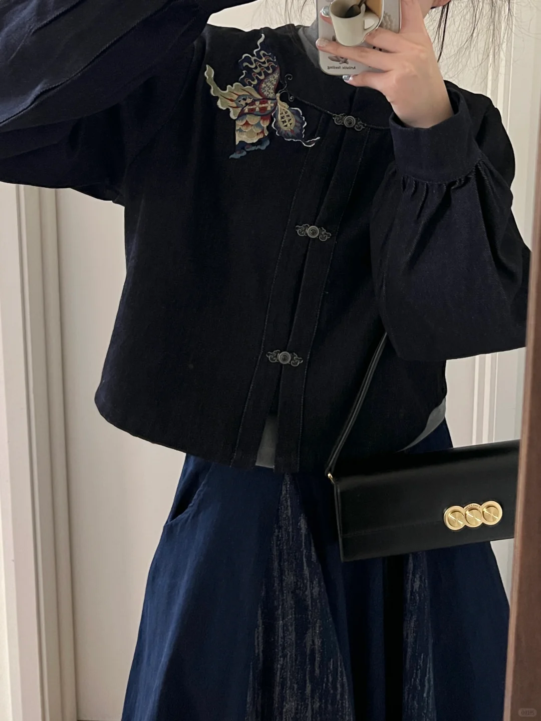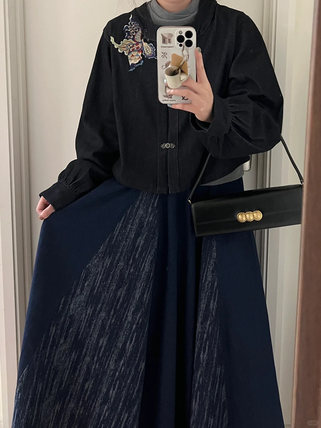 慵懒新中式|汉服刺绣牛仔外套+拼接牛仔半裙