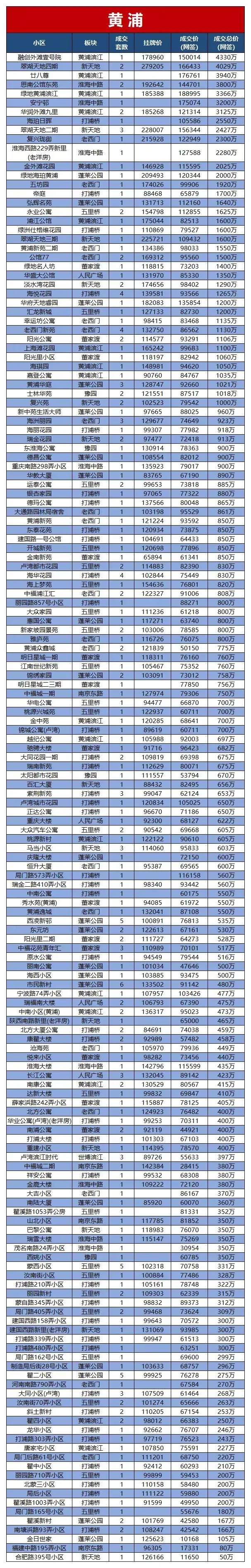 上海二手房三月成交TOP10
