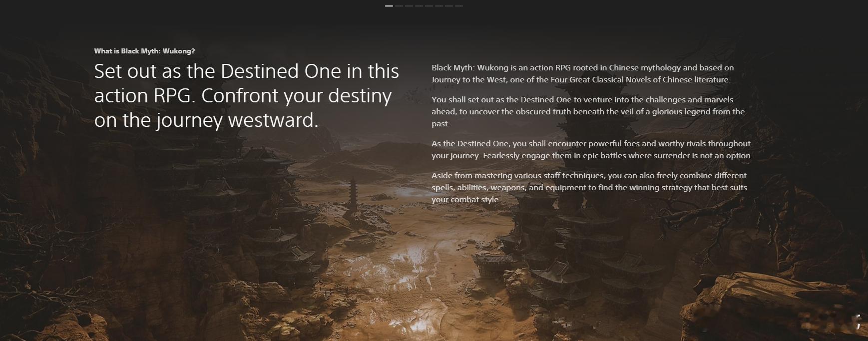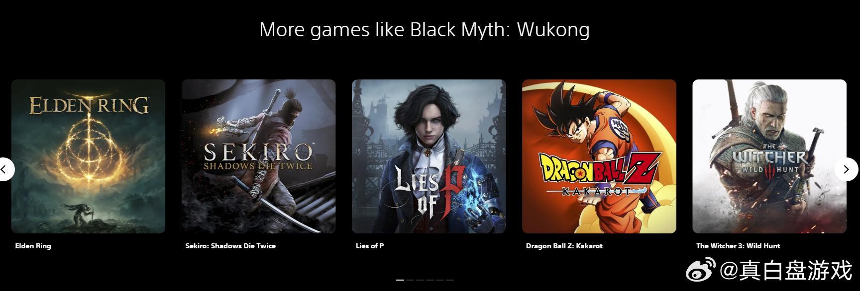 港服页面并未上线,PS官方给黑悟空的同类型游戏有《只狼》《巫师3》《艾尔登法环》等。