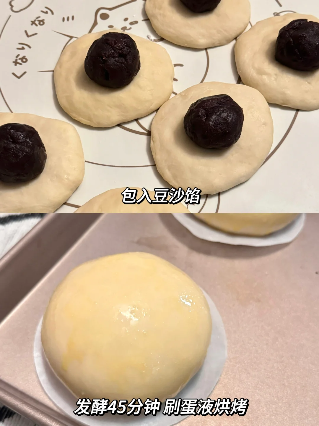 很经典的一款面包,搭配上过滤的希腊酸奶真的很加分!馅料是在超市买的红豆沙,面团可做万能甜面团来使用。
