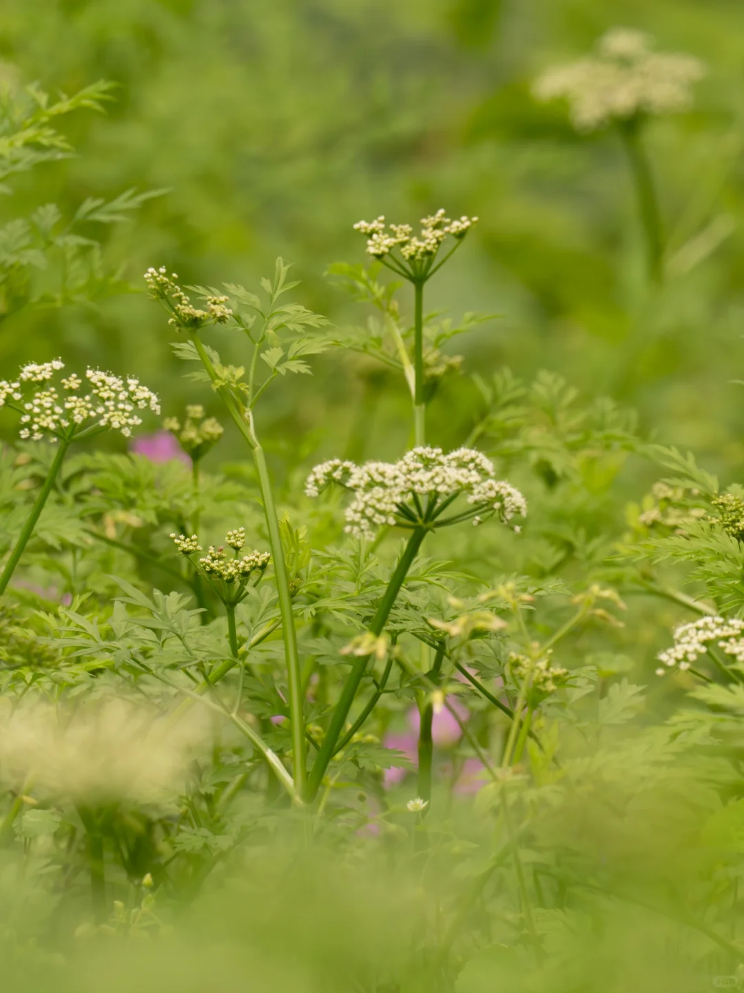 水芹,此时花开。伞形的小花,像是林间精灵撑死的一把把蕾丝伞,轻盈地在山林间跳跃。它和我们餐桌上的芹菜是一家早在唐朝以前便有关于水芹的记载。水芹是《吕氏春秋》中的“菜之美者”,还是《诗经》中“觱沸槛泉,言采其芹。君子来朝,言观其旂。”更是屈大均笔下的“鲈鱼岂似吾乡好,风味水芹还绝。”。
