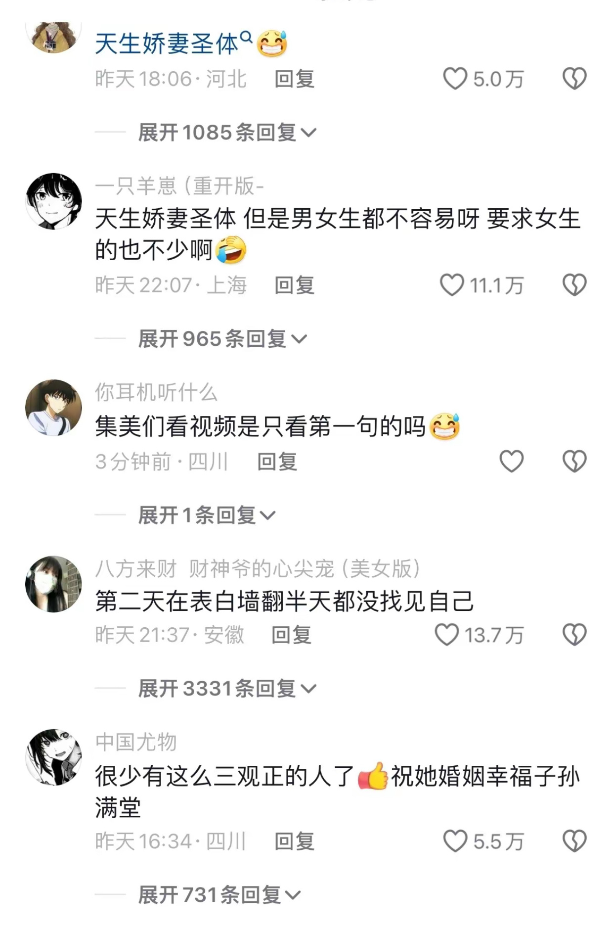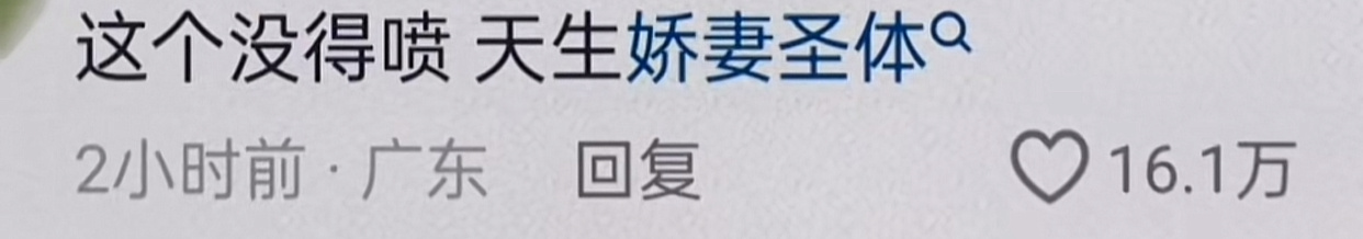 投稿,“我觉得这件事最幽默的点是,根本没人关心这个女生说了什么,抖在骂她娇妻,虎扑在骂她装,贴吧在骂骂她娇妻的人,也算一种特有的中式浪漫了”