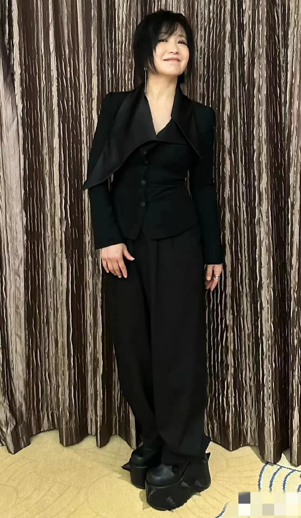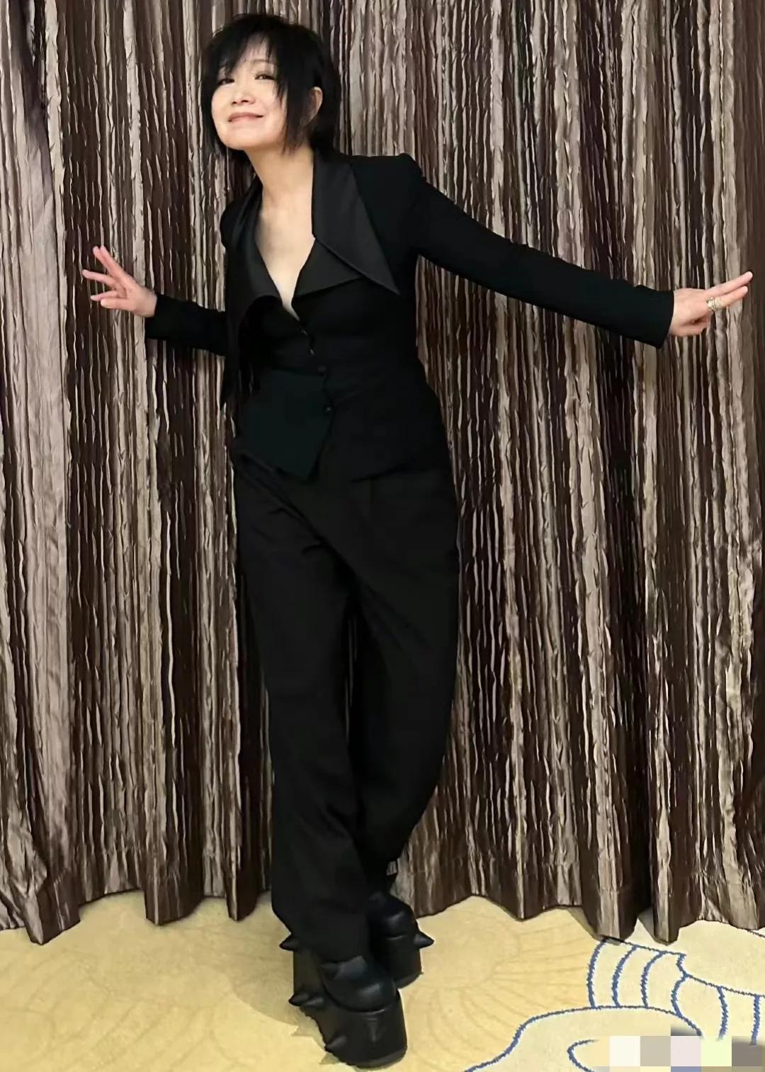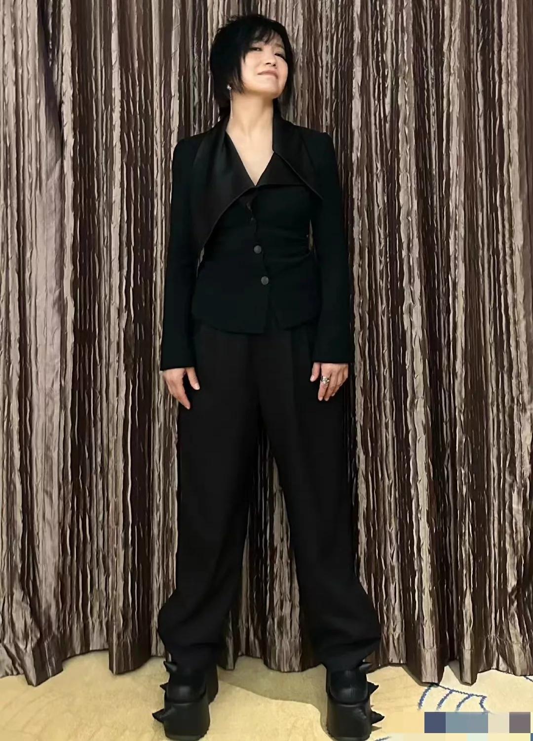 好久没见! 斯琴格日乐深夜发布了一组自拍照,精致的妆容下难掩疲态,最惹人注目的还是她那高达12厘米的增高鞋! 一头干练的短发,配上庄严肃穆的黑色,展现了一种成熟女性的魅力! 近年鲜有在公众场合露面,大家是否已经忘了她的存在?