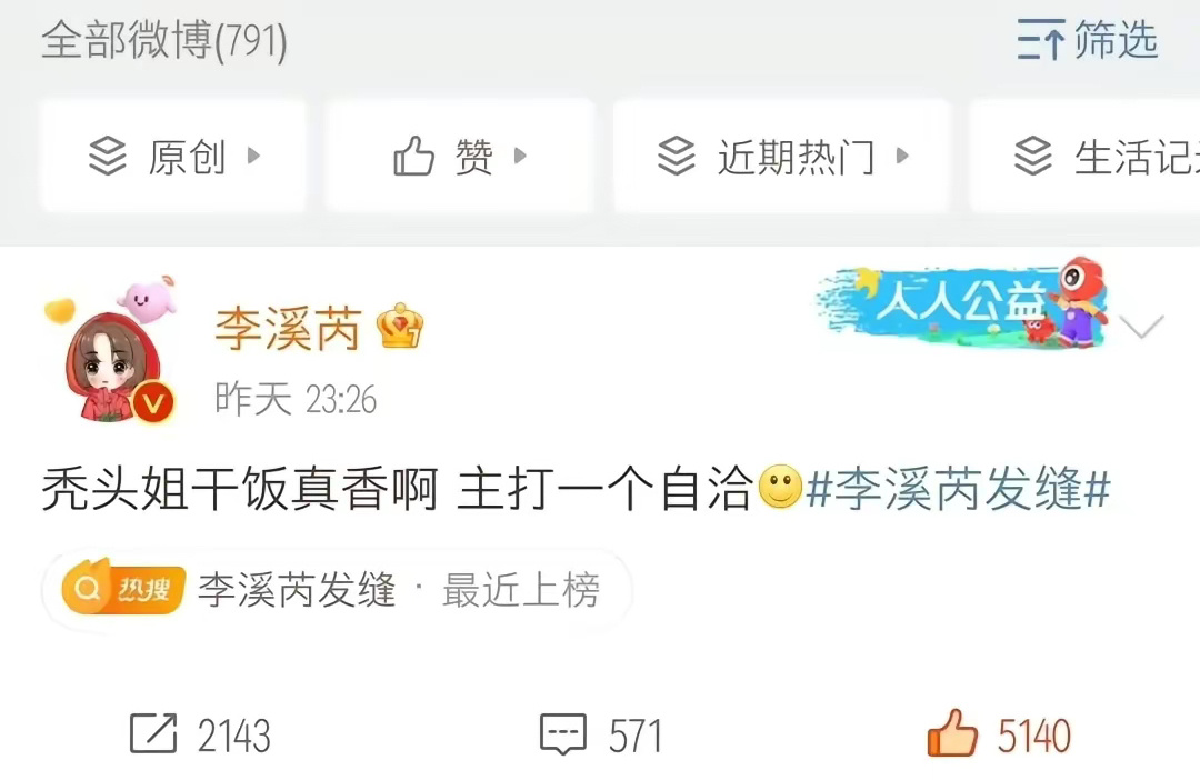 对此李溪芮也回应了发缝宽的问题,秃头姐干饭真香啊,自嘲头发秃顶,直女果然都是有直面问题的能力。有网友评论你都从头发丝美到脚了有点发缝怎么了。