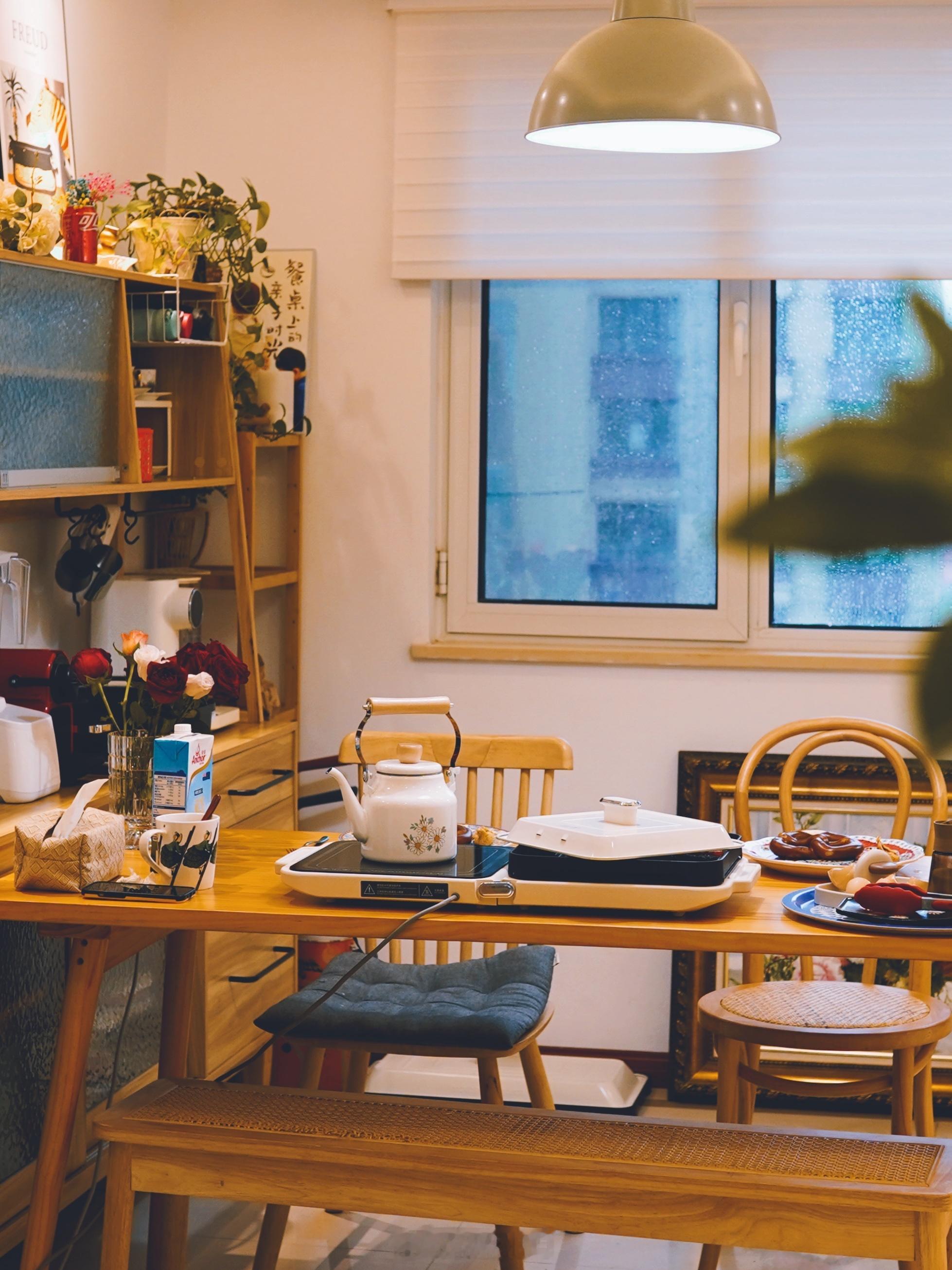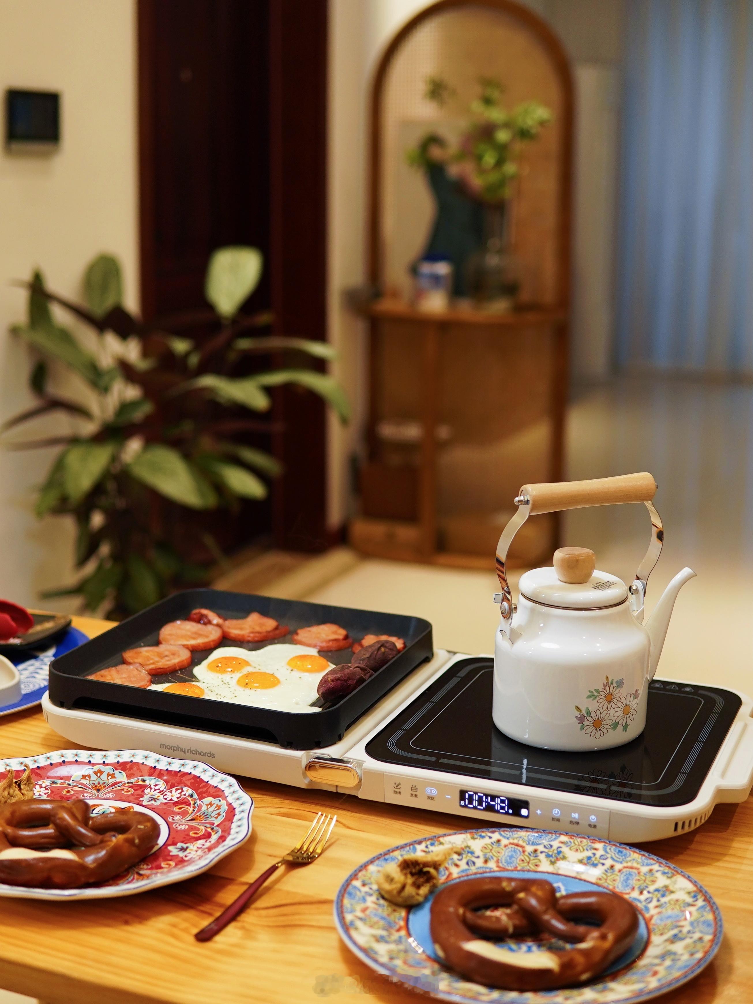 🌧️下雨,吃热乎乎的早餐,在餐桌上一边做一边吃。摩飞的新款折叠多功能锅,两侧电陶炉,等于拥有了可移动的厨房。