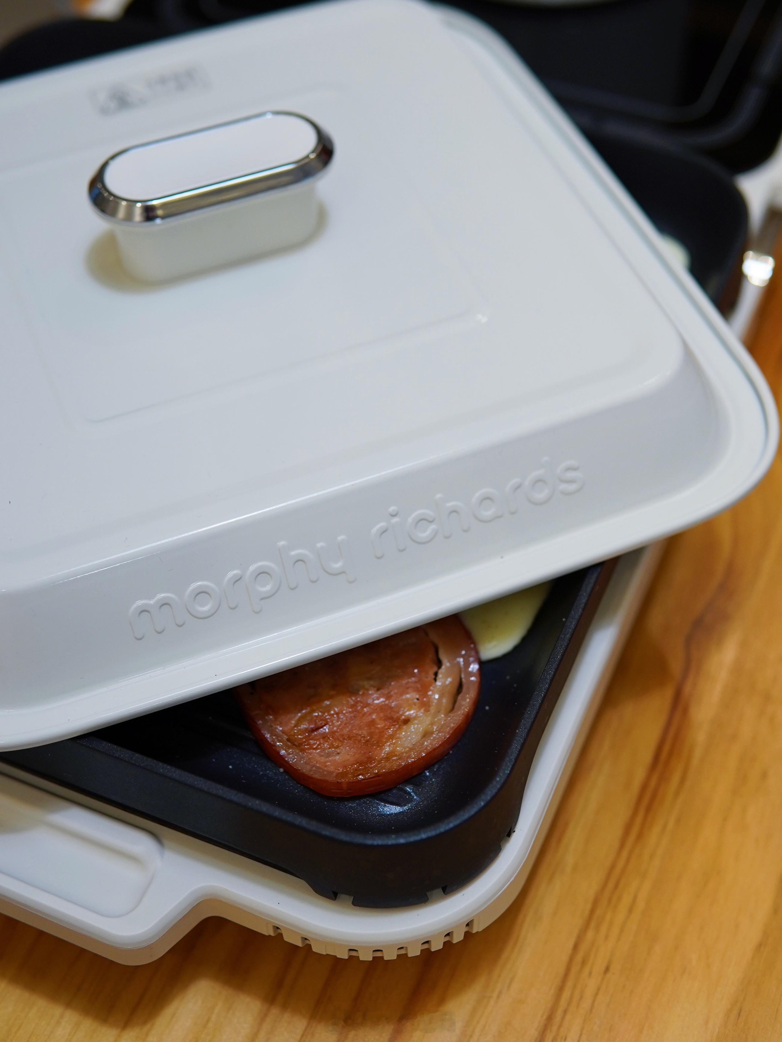 🌧️下雨,吃热乎乎的早餐,在餐桌上一边做一边吃。摩飞的新款折叠多功能锅,两侧电
