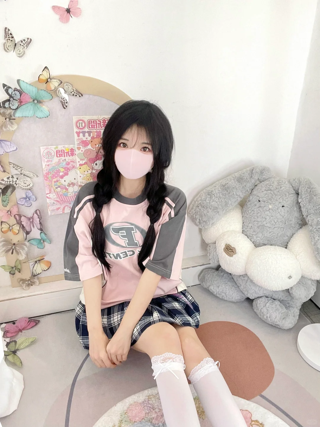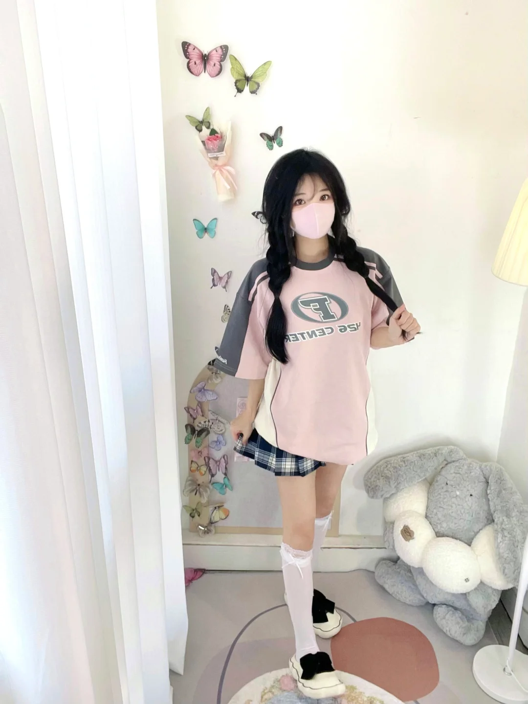 谁懂💧i人出门离不开口罩耶 关键还蛮显脸小的 夏天穿着T恤格裙戴上口罩好青春呀!