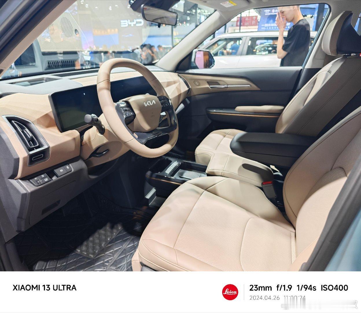 起亚 EV5,不得不服韩国人设计能力还是很强的,内饰外观很多设计都有创新。EV5 也算是非中国品牌屈指可数不错的电车,但是但是,展台的人全被对面的比亚迪吸走了.......他们来车展之前不看看风水的吗?#大v聊车#