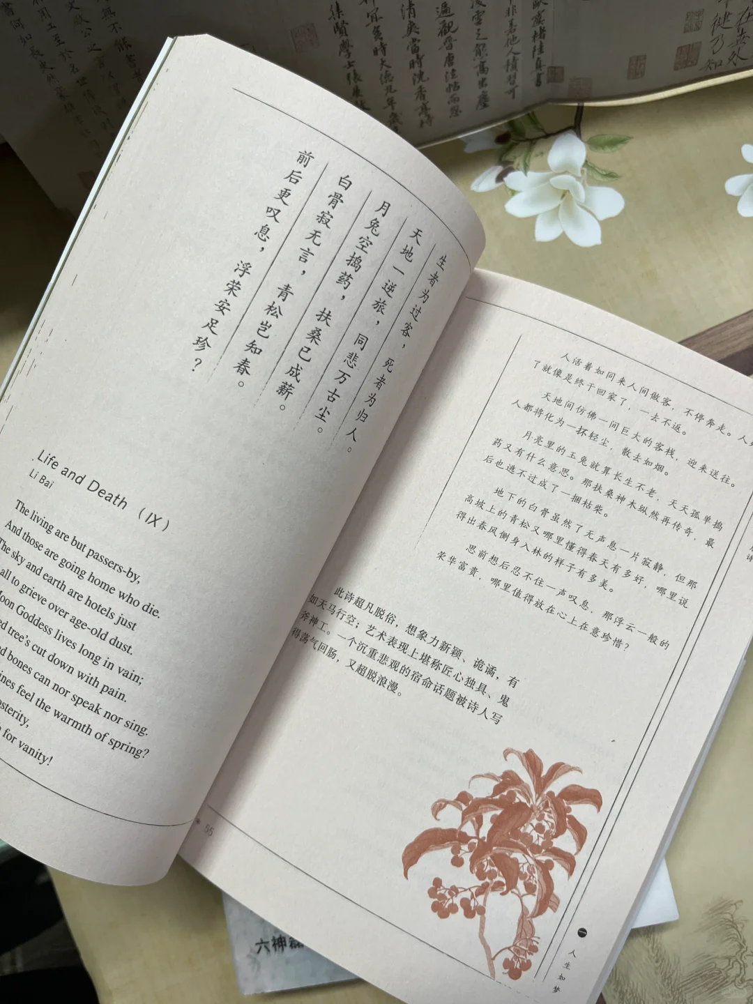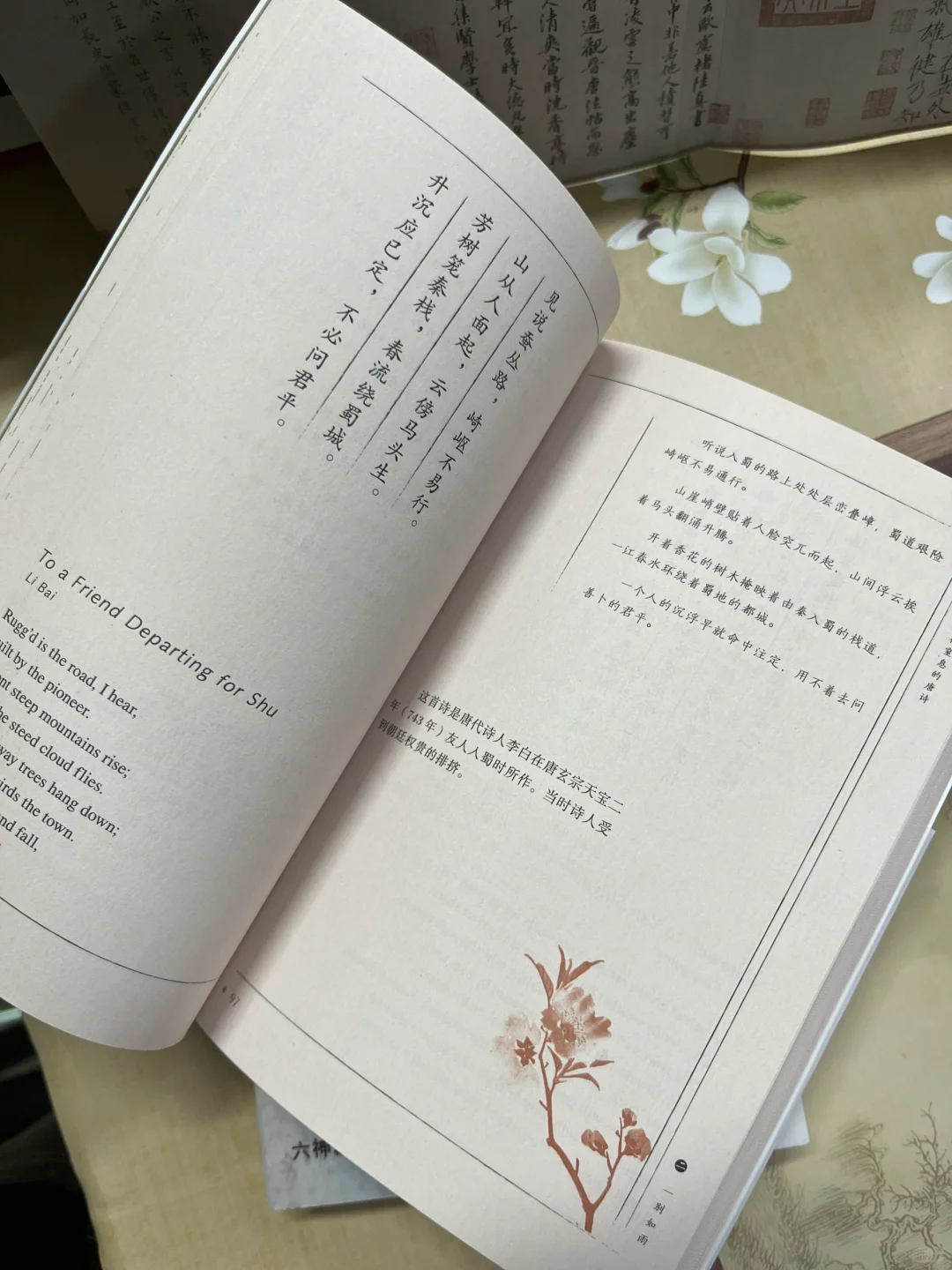 如今,唐诗读本非常多,让人眼花缭乱。但这套由中国翻译界泰斗许渊冲英译、陆苏解析的《美得窒息的唐诗》却惊艳到我了。这是一本美到翻开书页都是一种享受的书。