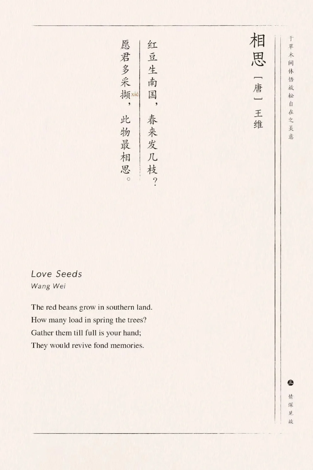 再看解析。以前都是带着挑剔的眼光去看诗歌解析,但这本书的解析却一再让我感到惊喜、惊艳。英译、赏析、深度解读、