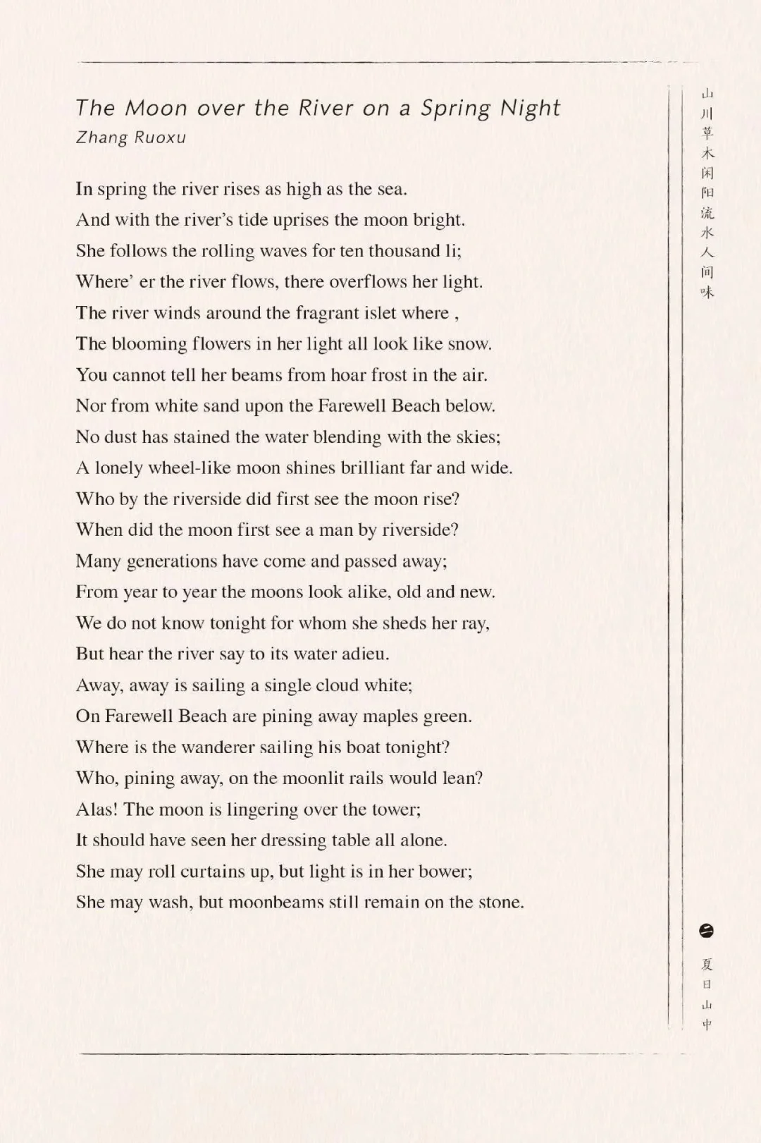 寥寥数语,诗歌的主旨、诗人的人生况味都包含其内了,关键是,语言还极美。