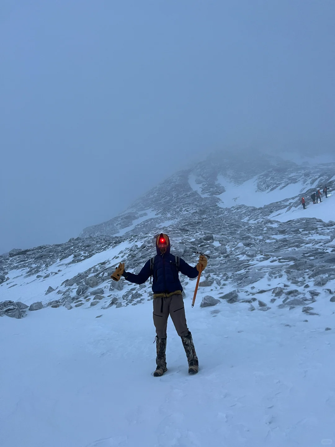 4月25日在狂风迷雾中登顶哈巴雪山