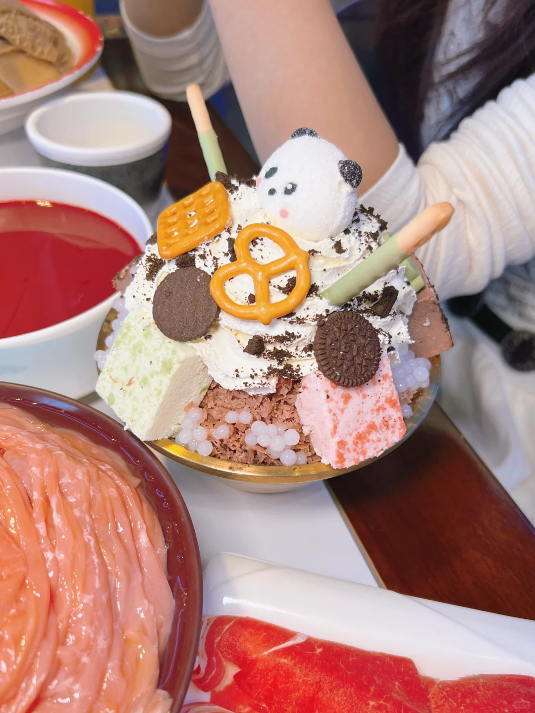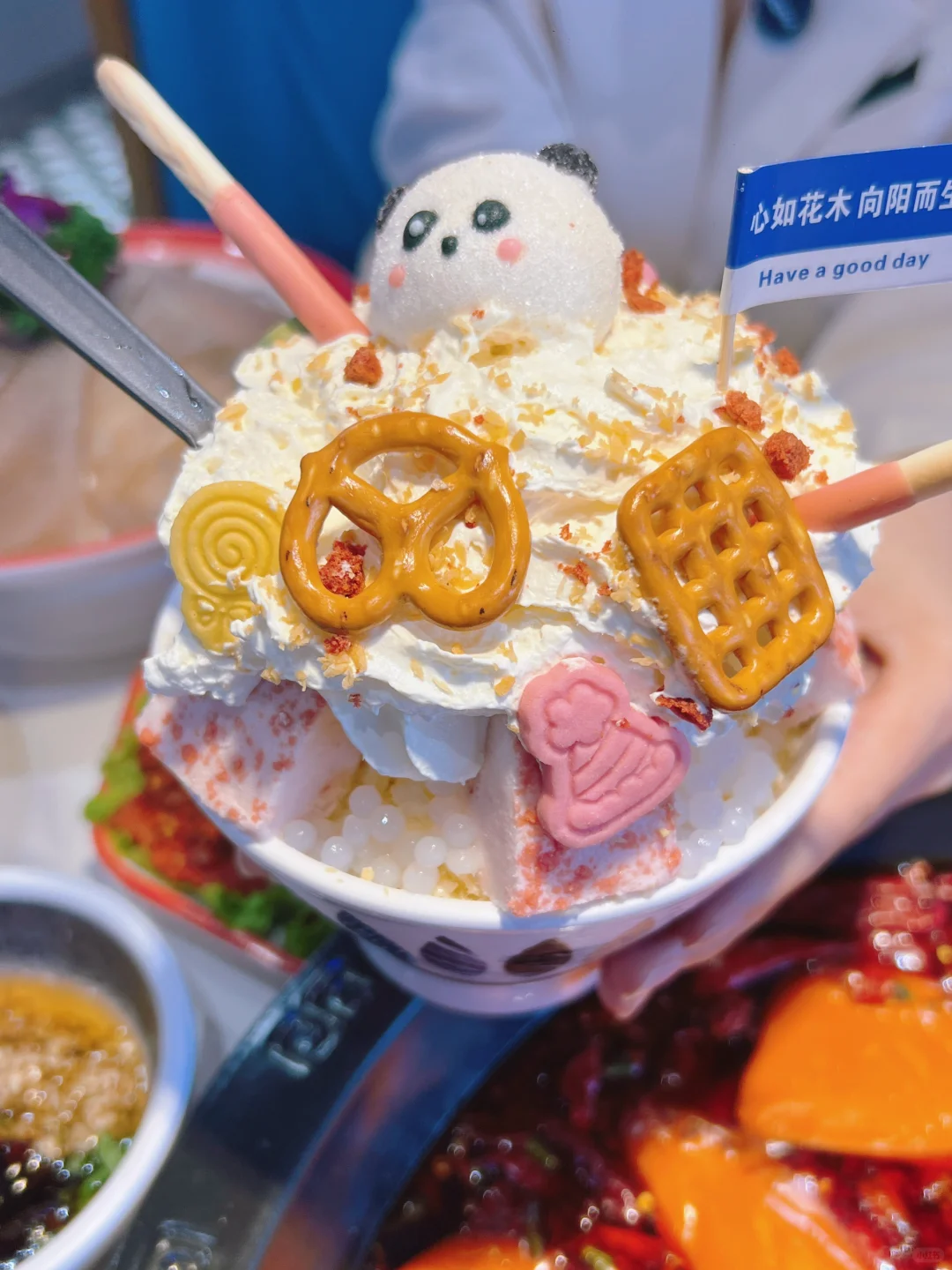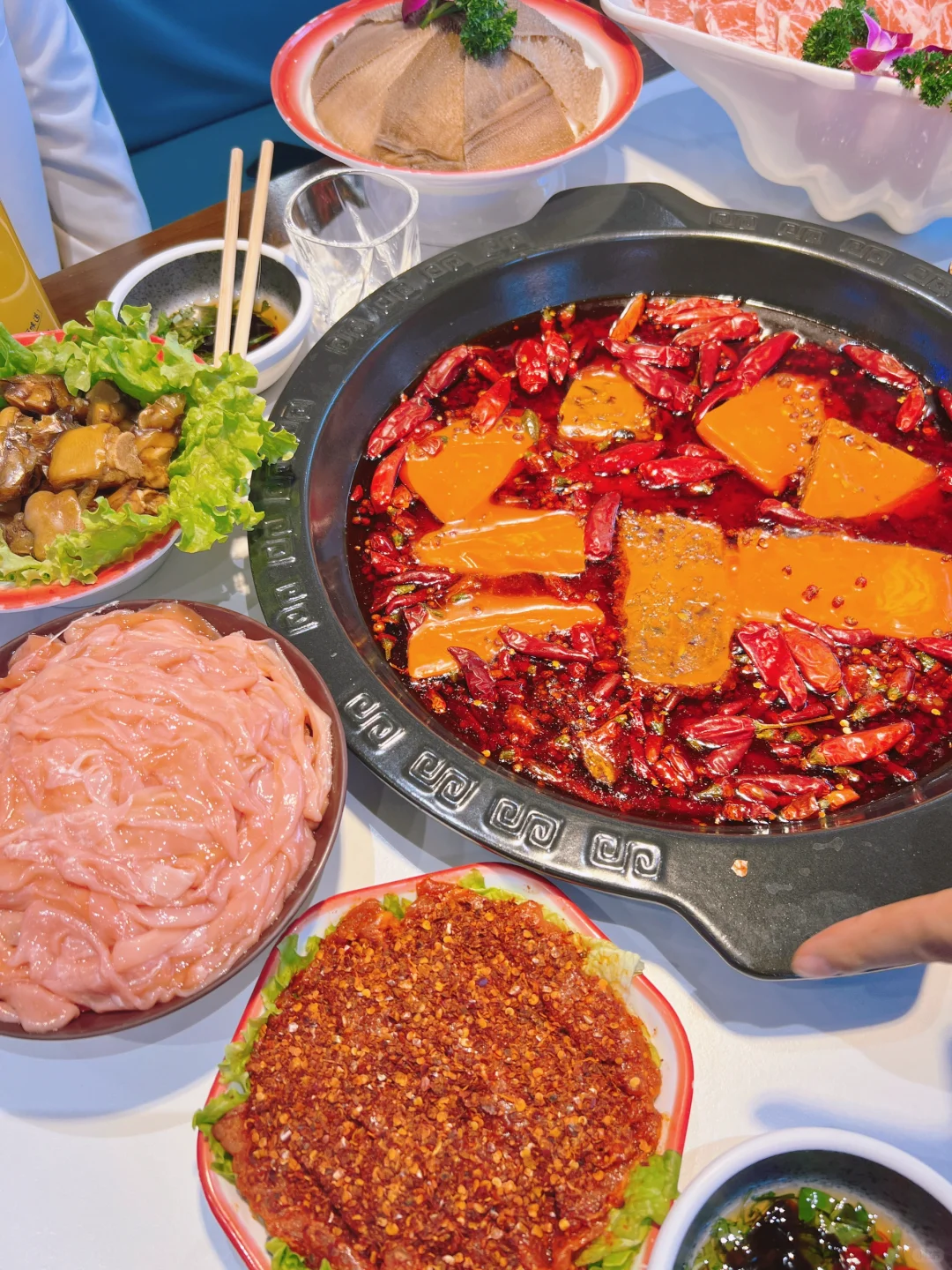 店叫玖局重庆老火锅 位置在万锦这边 他家门牌不惊艳,环境不华丽 但是味道很惊喜! 锅底超香!味道很正! 卤猪蹄炒鸡推荐! 鸭肠、毛肚、麻辣牛肉都很好吃 也很新鲜 雪花冰很可爱有没有! 没吃过的小伙伴快去打卡哟!