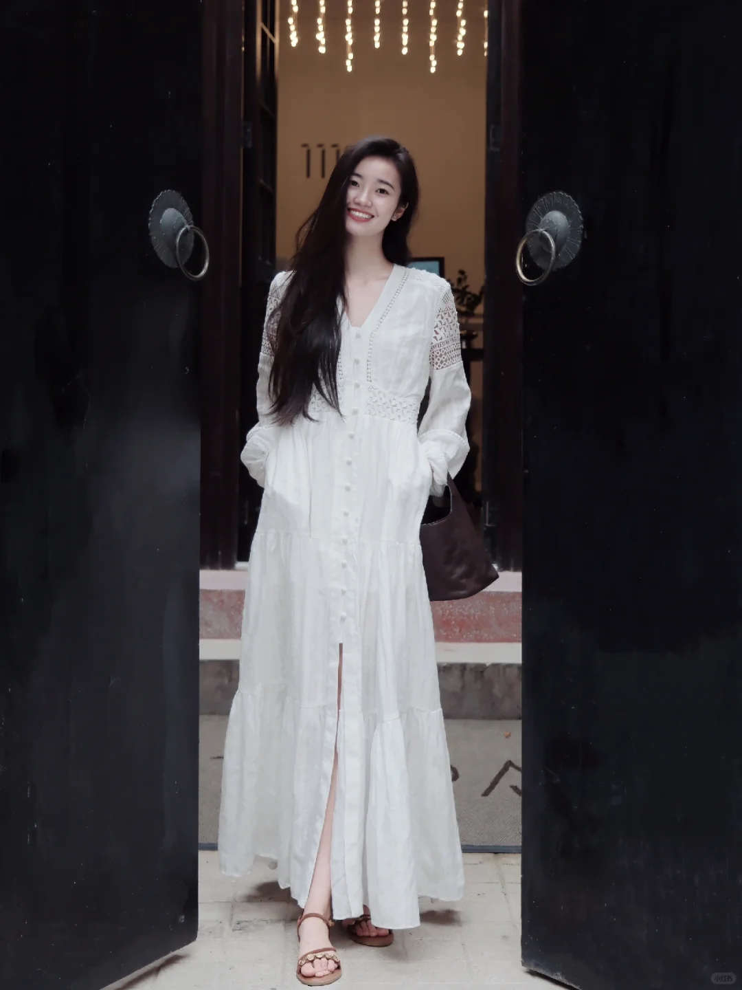 法式裙子配罗马凉鞋 度假氛围拉满~