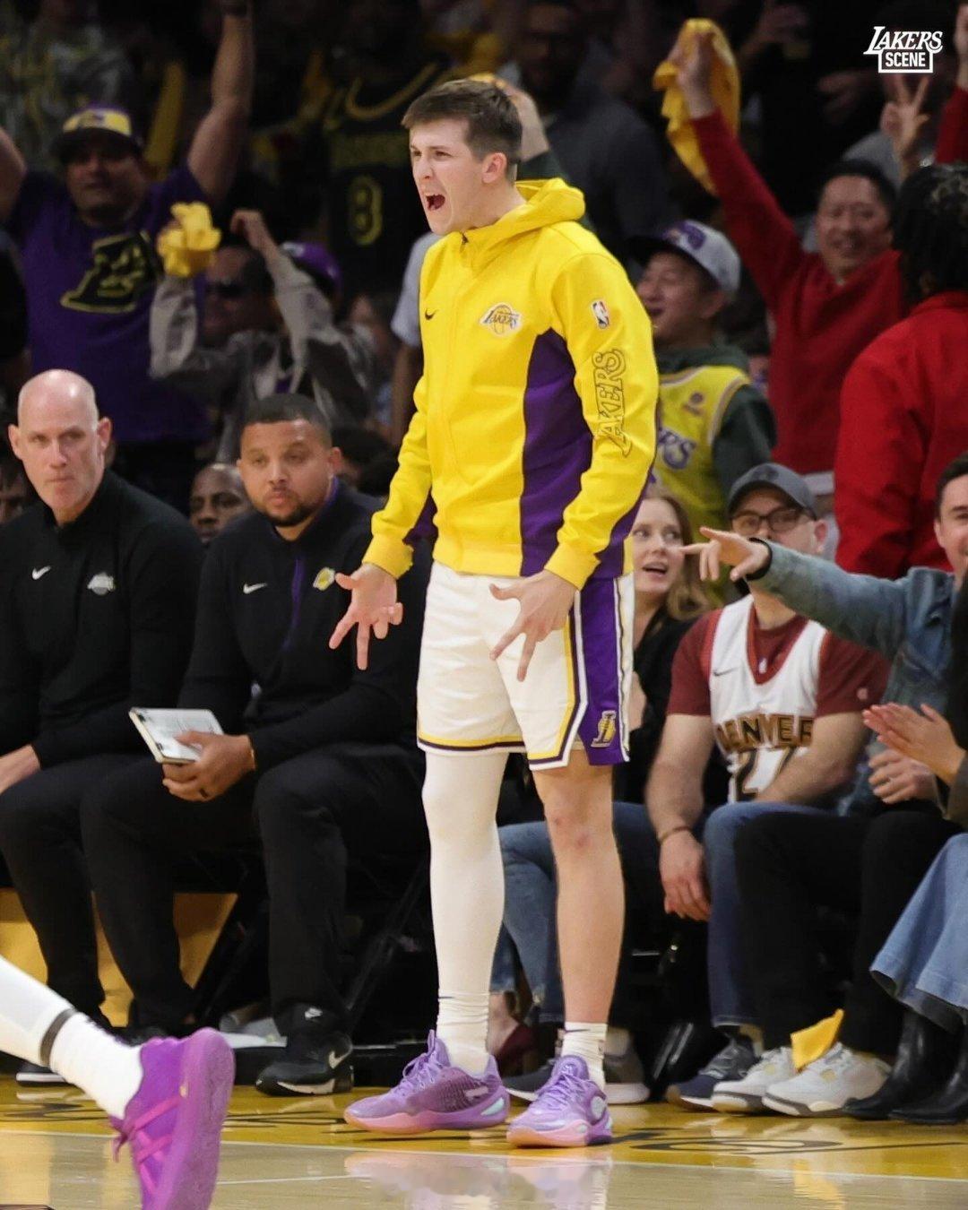 #湖人vs掘金# 今天詹姆斯30分,浓眉25分23篮板,里弗斯拉塞尔都是21分,八村和普林斯都是9分。湖人众将加油再撑一场, 回到主场一切皆有可能, 目测穆雷已经受伤了,说不定还能约基奇(约G7)加油