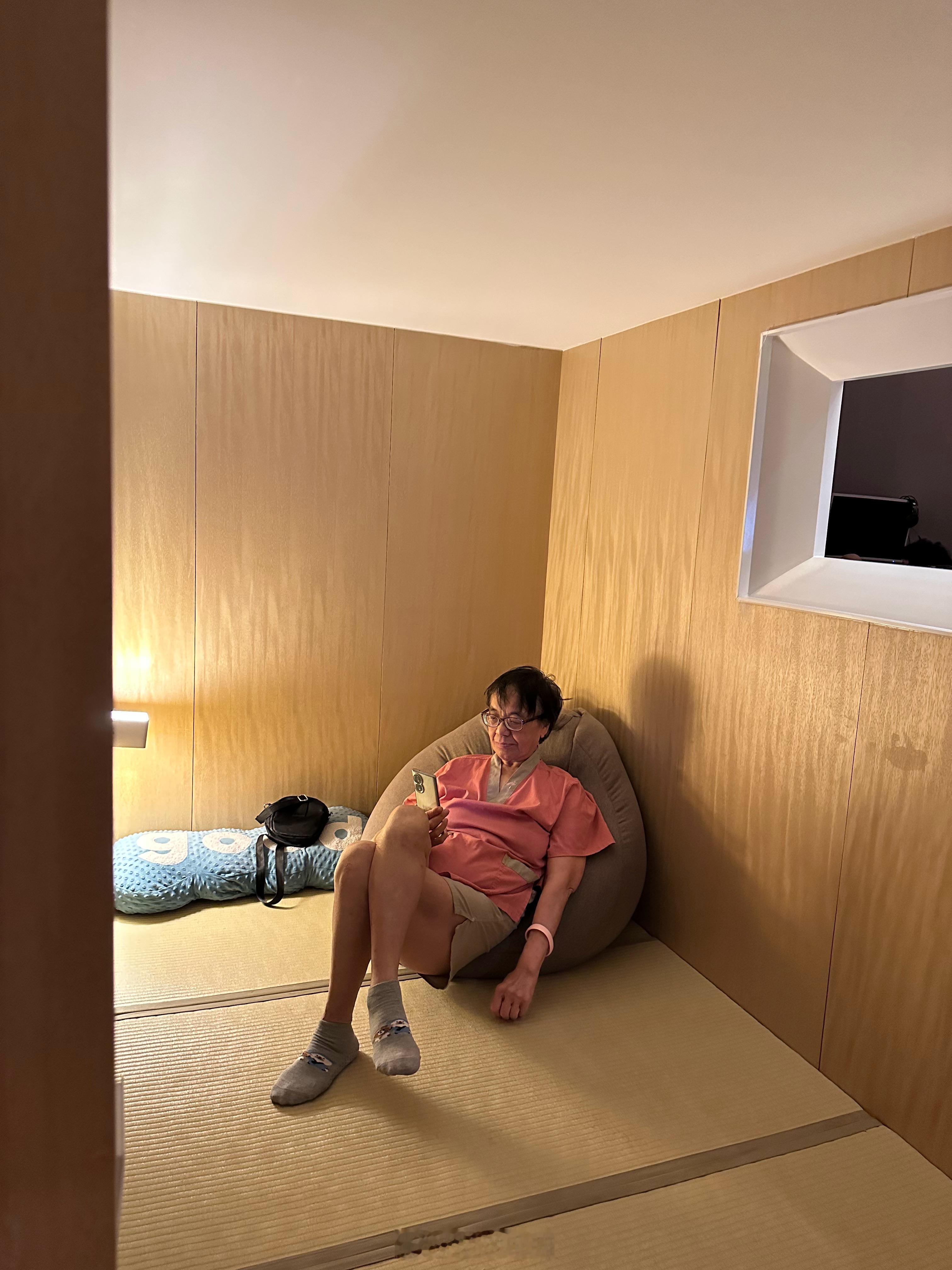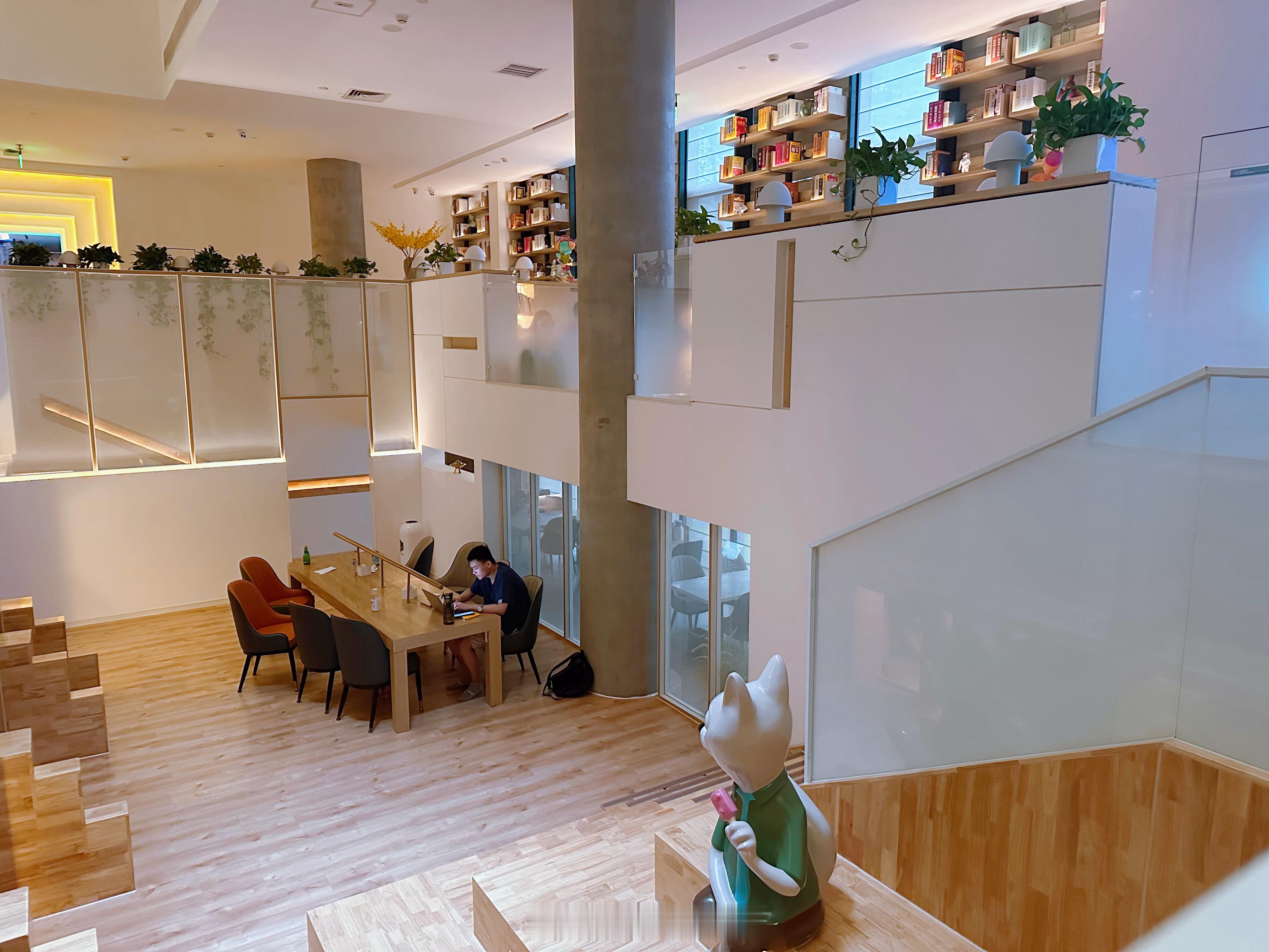 👍这地方8000平,三层,洗浴温泉男女分开。公共区域有好大个图书馆,安静的小格子间,能睡觉开电影的休息区、女士专享的睡眠室、书桌办公区、电脑娱乐区、日式榻榻米休闲区、咖啡吧。各种汗蒸房,我最喜欢中药的,屋里好多药盒子,散发浓浓的中药香。