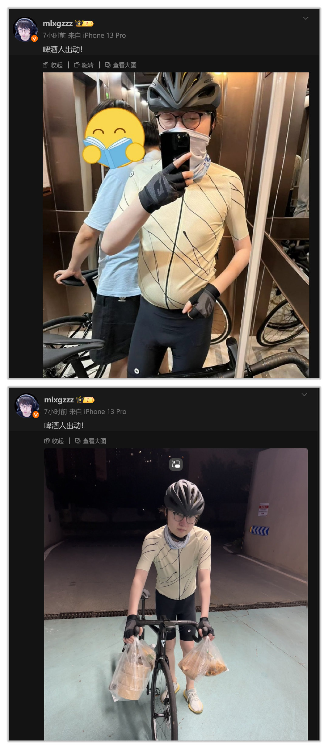 要是不看mlxg自己发了微博出去骑车,估计有人真信骑车送外卖吧[允悲]