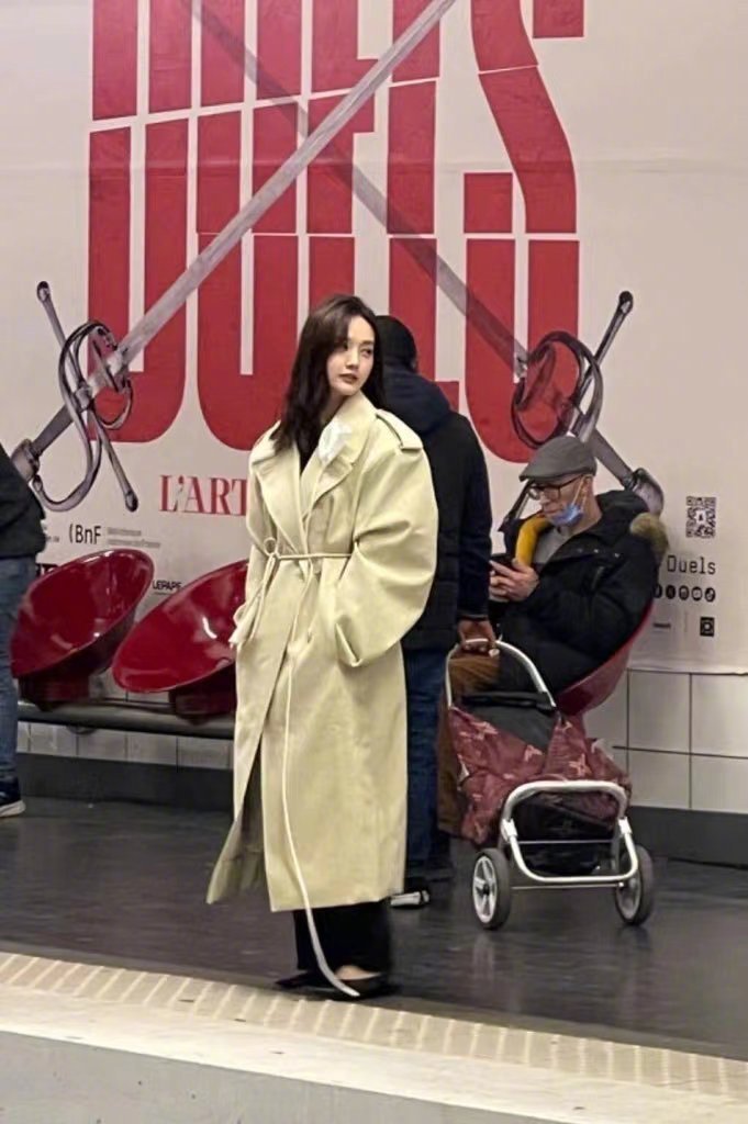 #巴黎偶遇李一桐坐地铁# 有网友巴黎偶遇李一桐坐地铁,这一身大衣看起来好有气质!