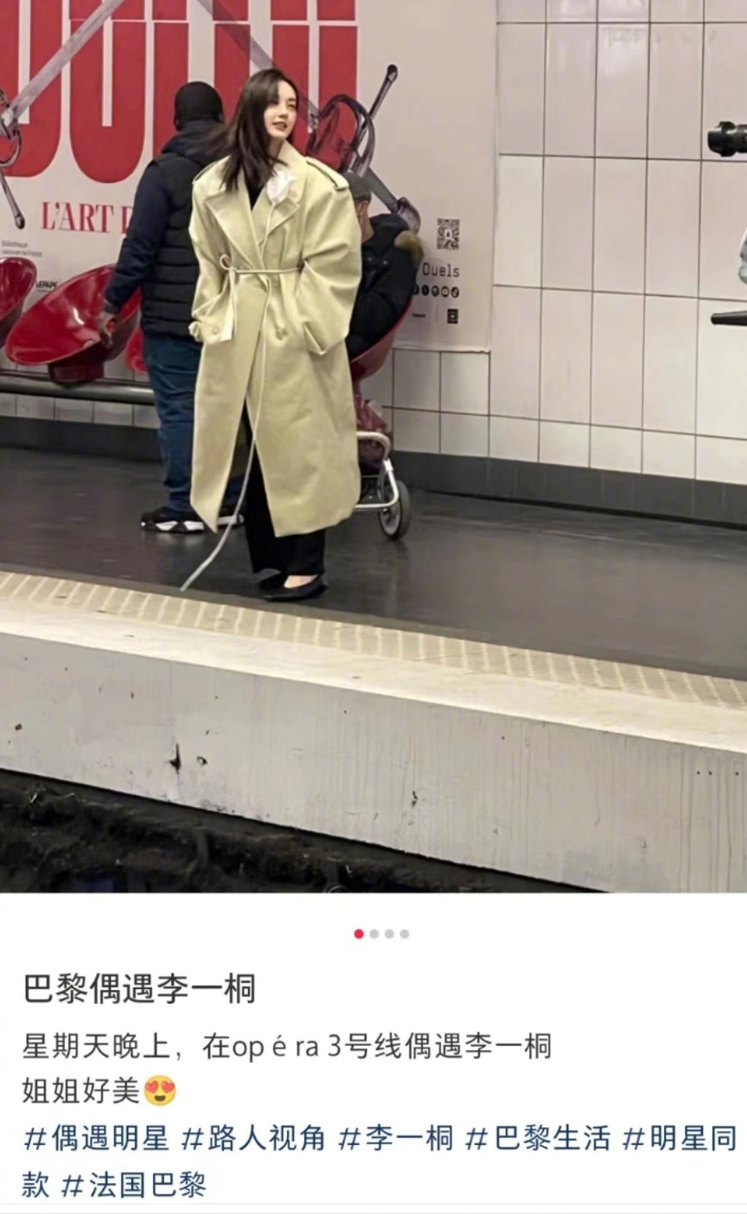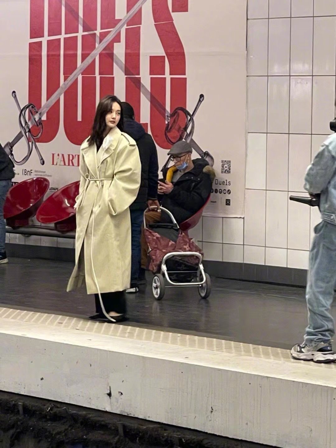 #巴黎偶遇李一桐坐地铁#有网友巴黎偶遇李一桐坐地铁,这一身大衣看起来好有气质!