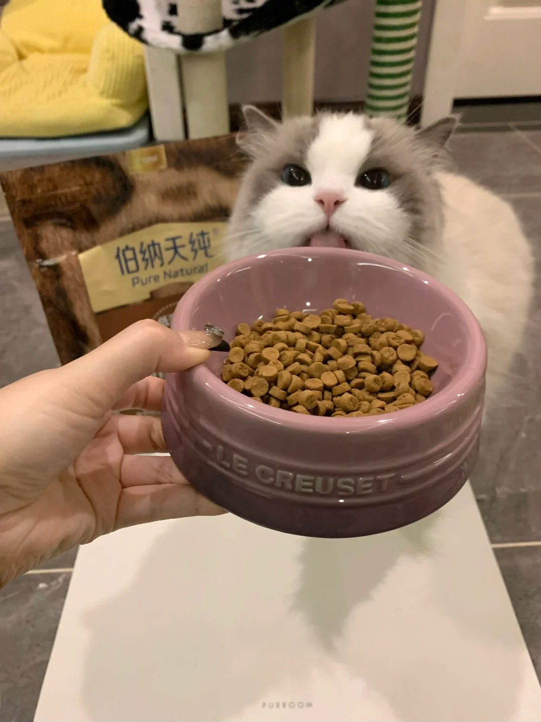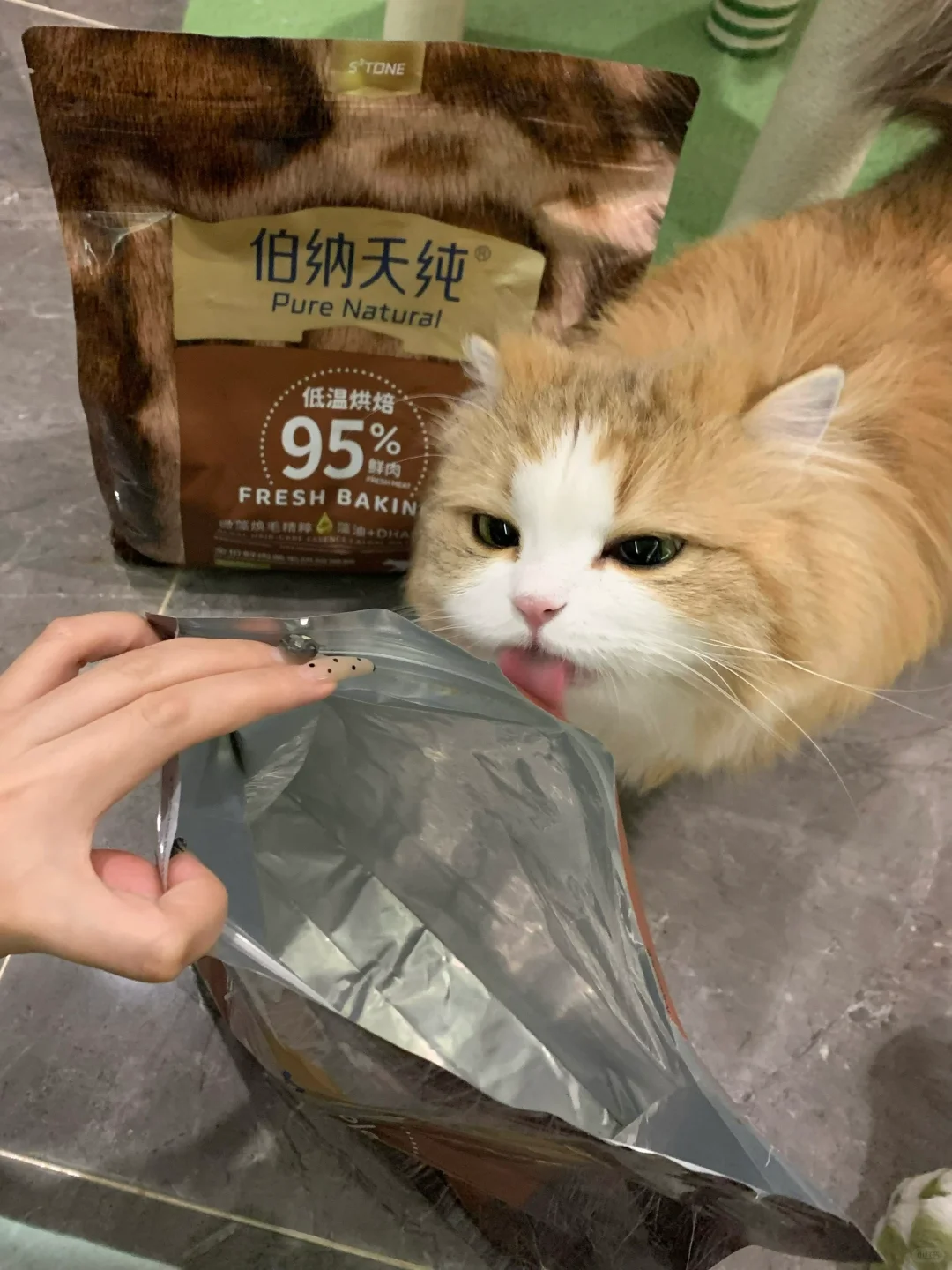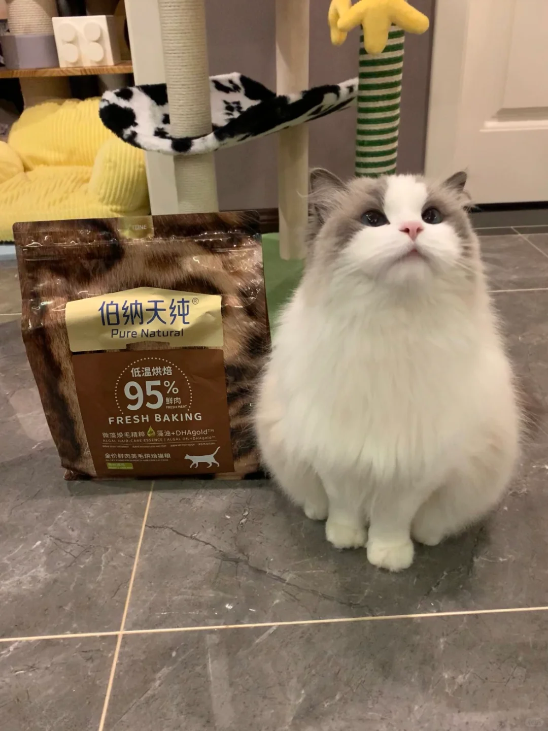 麻麻刚刚去给你取回购的伯纳天纯美毛猫粮啦